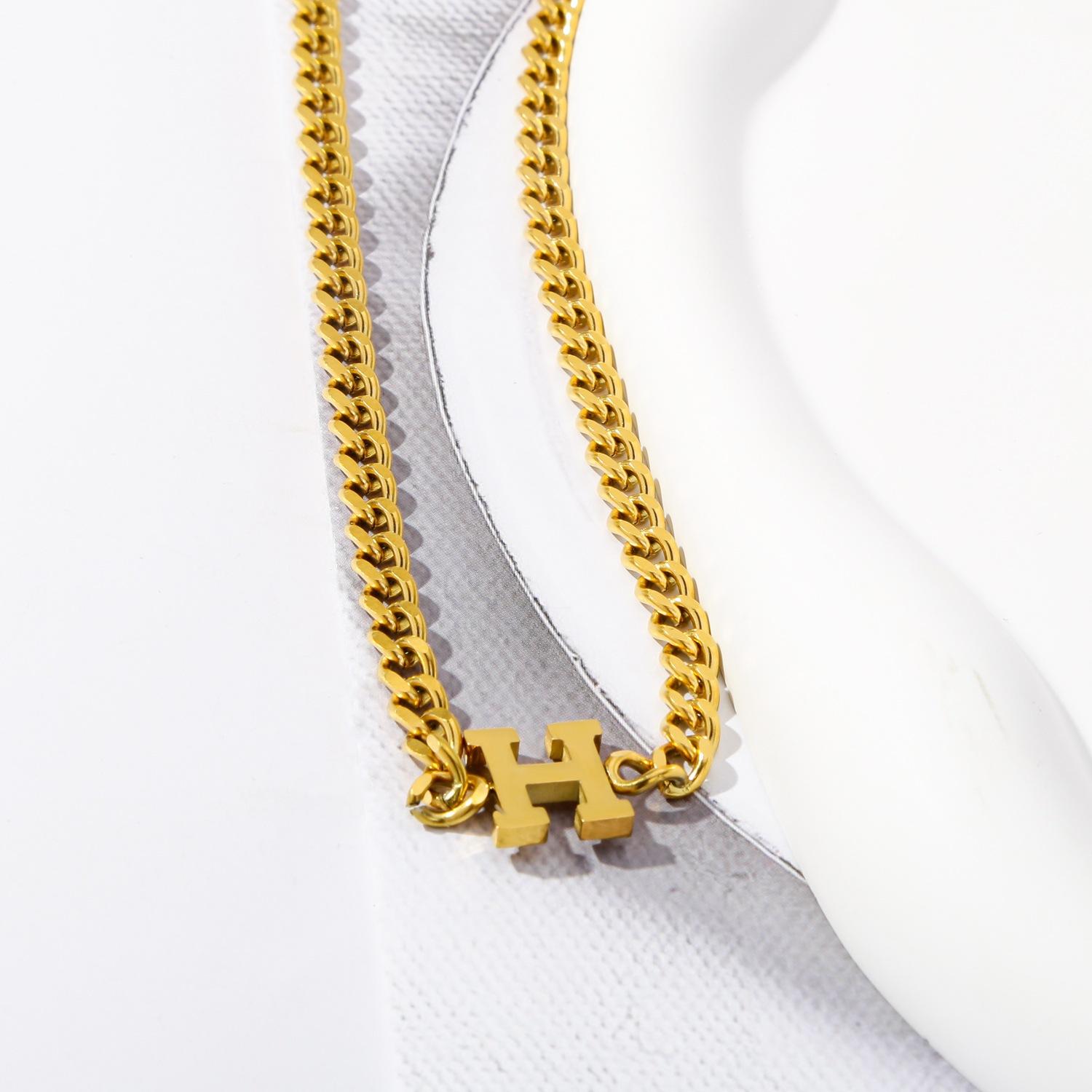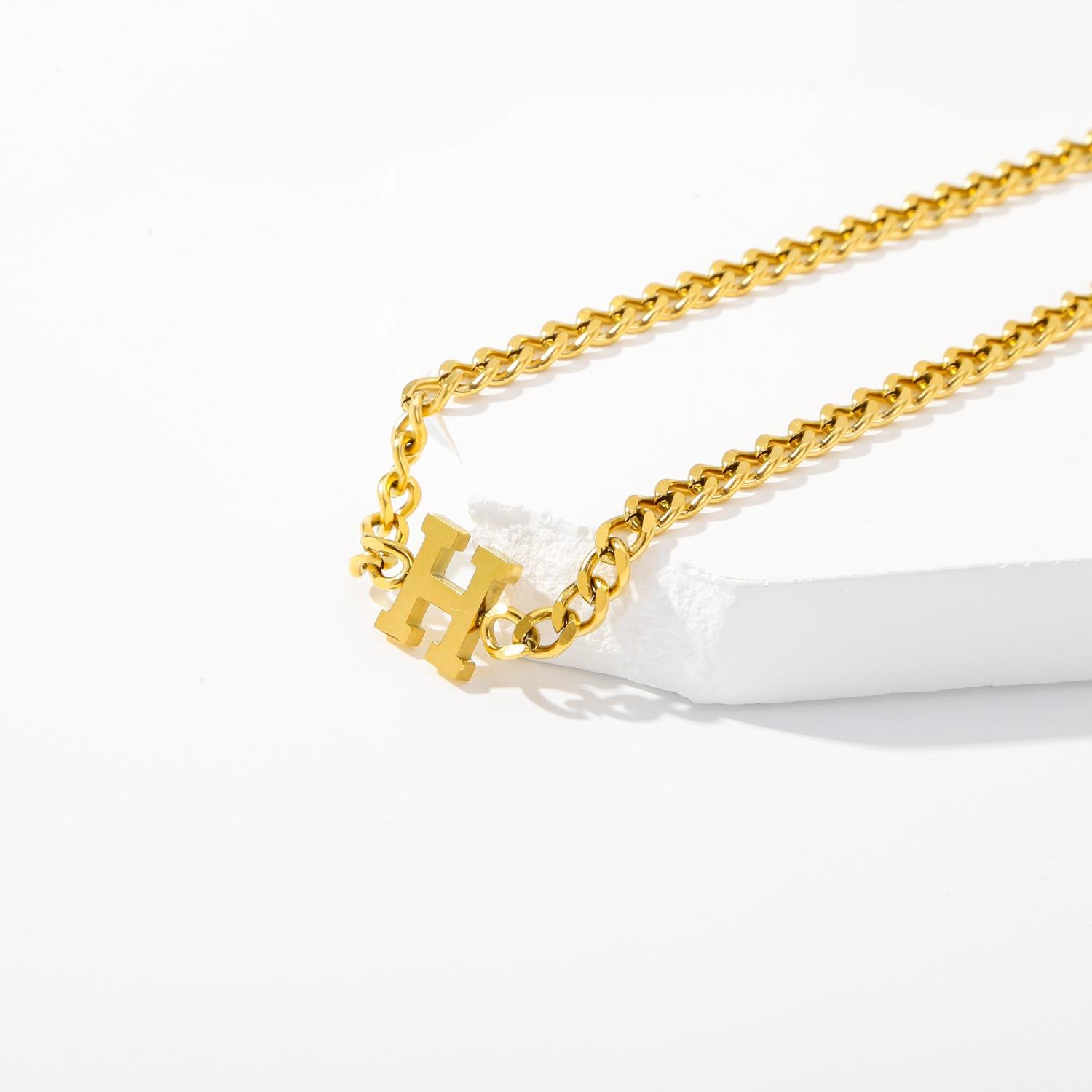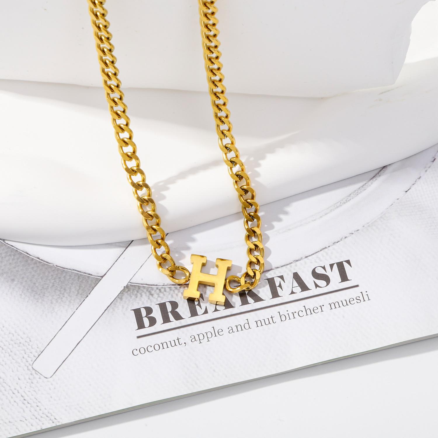 Collar de acero de titanio con letra H y cadena NK estilo hip-hop para mujer, estilo frío, cadena de clavícula, cadena gruesa, cadena de cuello con personalidad simple.