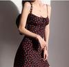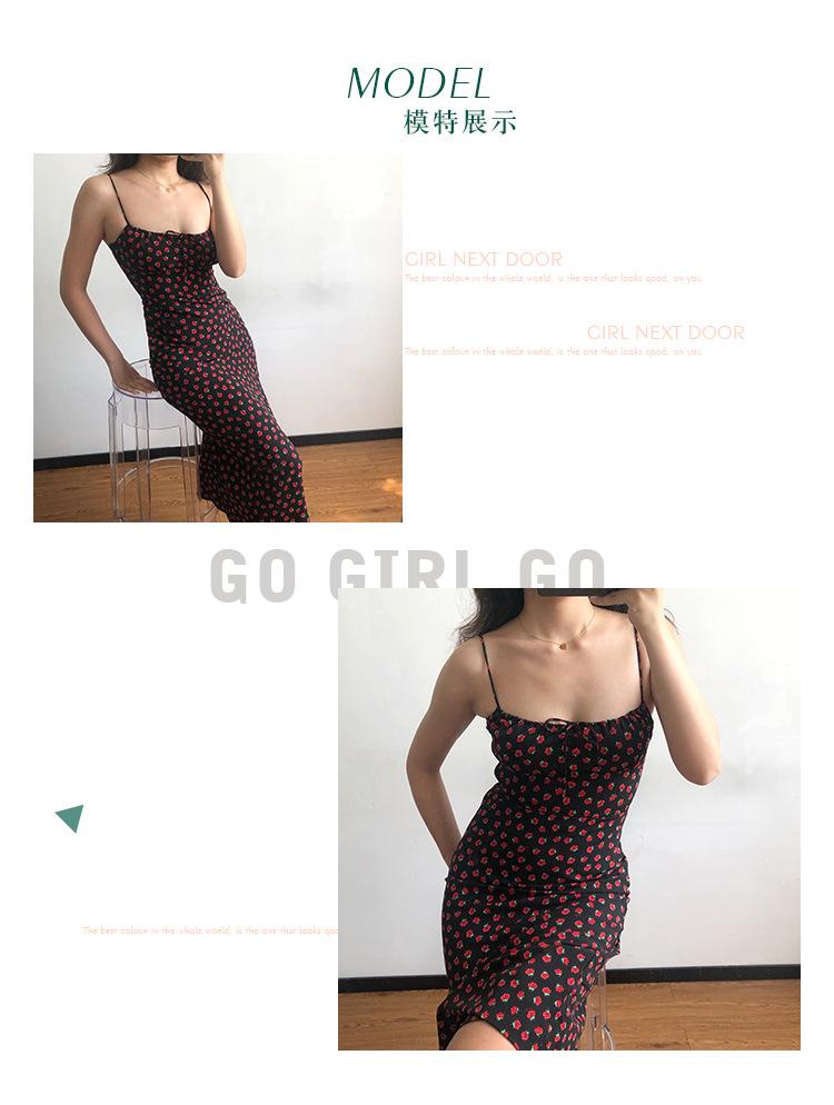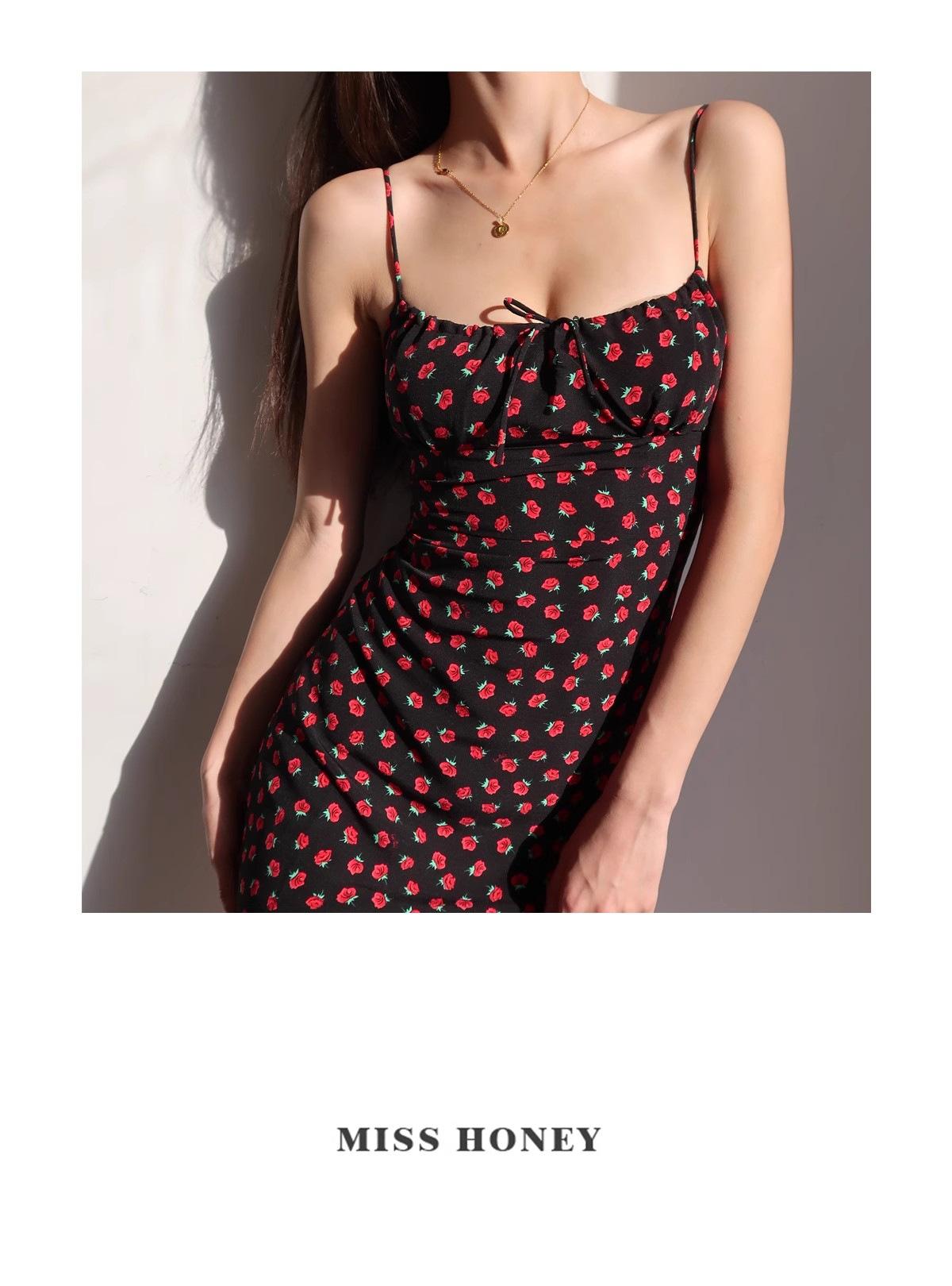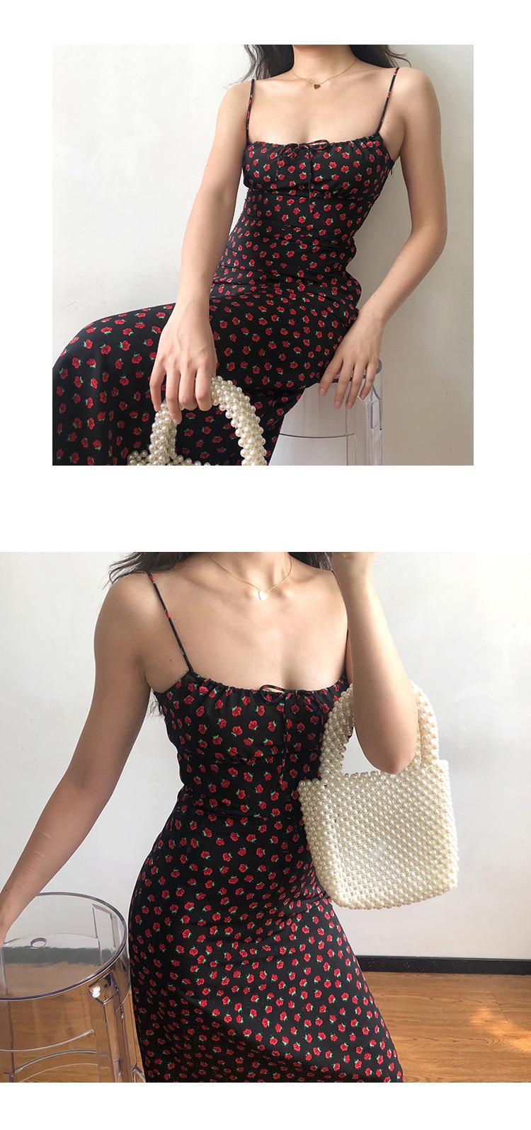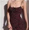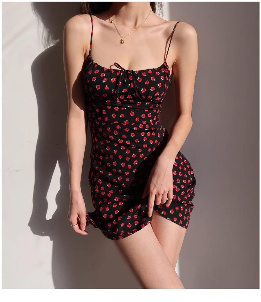 Vestido de verano estilo retro francés para chica, nuevo, con estampado floral, color negro y rosa salvaje, con efecto adelgazante y cintura alta.