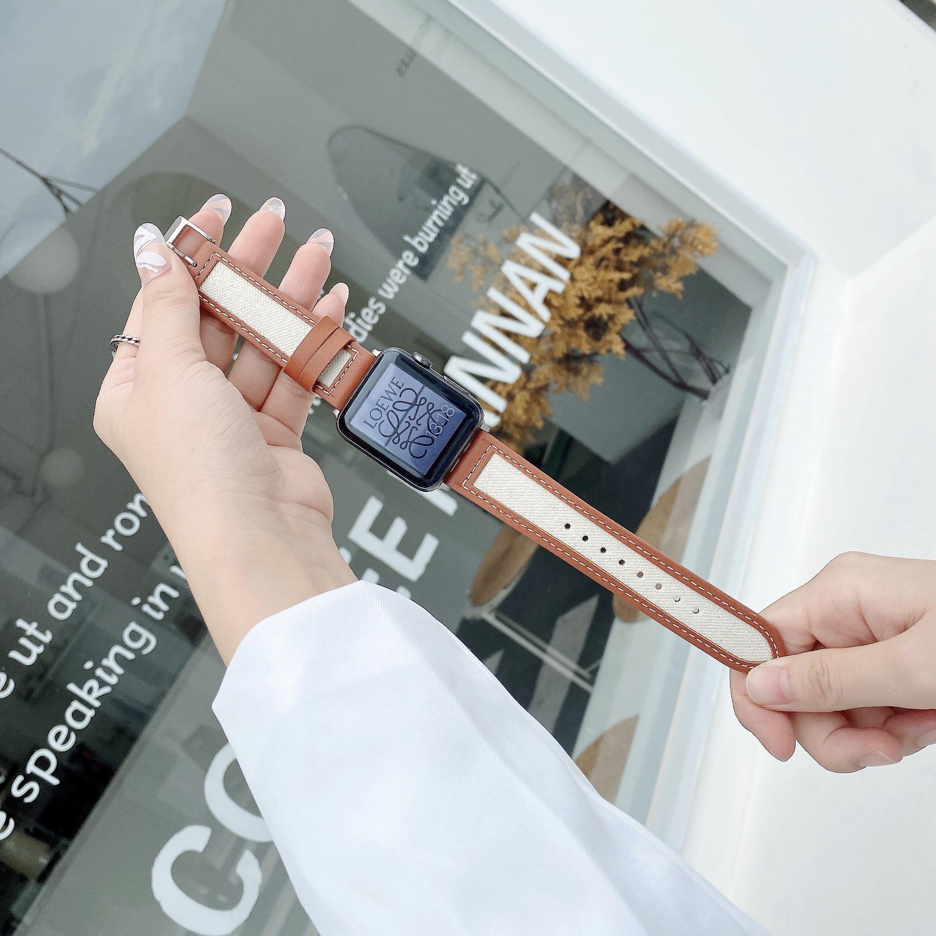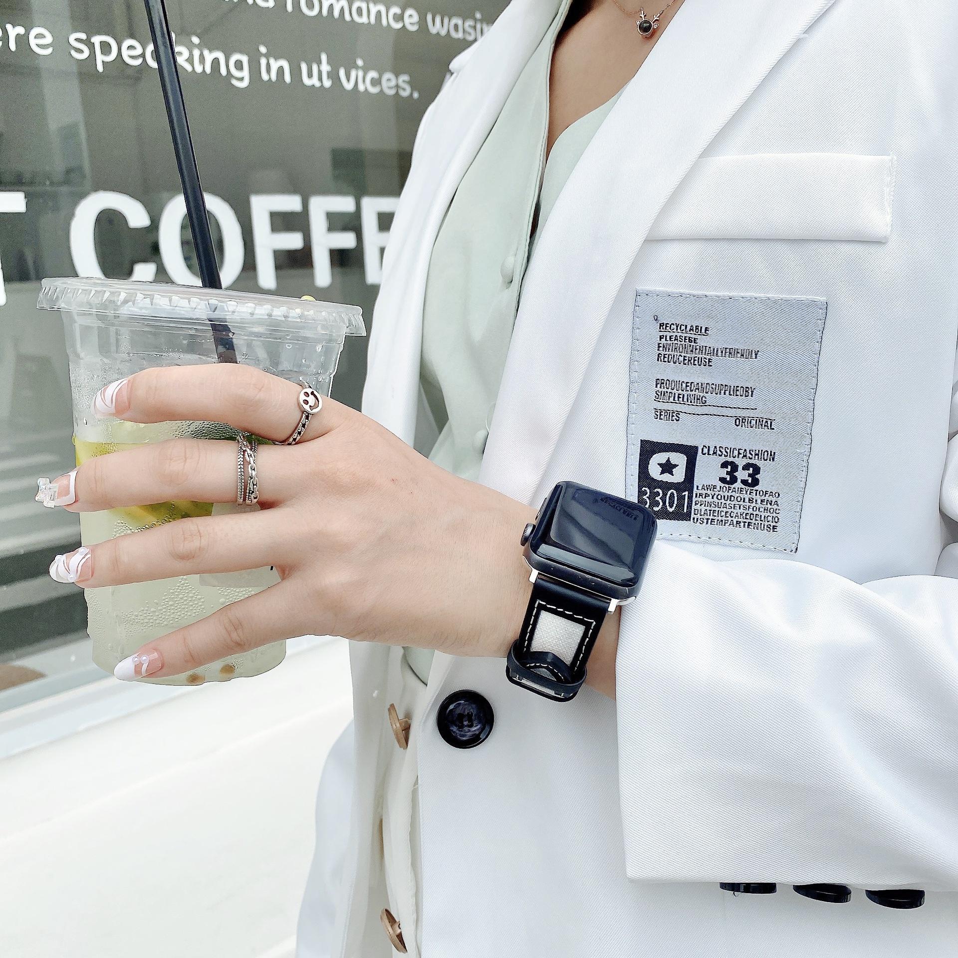 Correa de lona de cuero para Apple SE 6/5/4/3/2, correa coreana sencilla a juego con colores