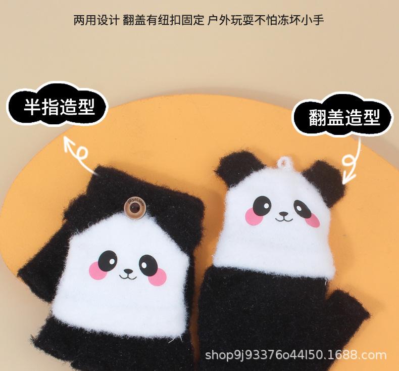 Velvet flip cover cute panda black recommended for 3-7 years old