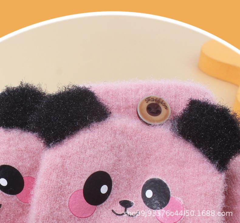 Cute panda pink velvet flip cover recommended for 3-7 years old