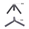 Hecho de aleación de aluminio, con 2 niveles ajustables, puede ajustar la altura del trípode según sus necesidades. El tamaño plegado es de 12.7 cm, lo cual facilita su transporte. La parte superior utiliza un tornillo universal de un cuarto de pulgada, que se puede conectar a la mayoría de los productos del mercado. Tales como (cámaras, teléfonos móviles, luces de relleno, micrófonos, etc.). La parte inferior tiene una almohadilla de silicona antideslizante para mayor estabilidad.