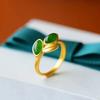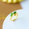 Conjunto de plata y oro S925 con elegante anillo de jaspe de hoja de Sapa, collar y pulsera, conjunto de tres piezas con colgante de novia de jade.