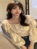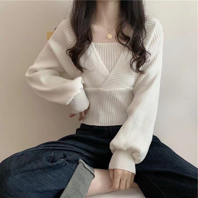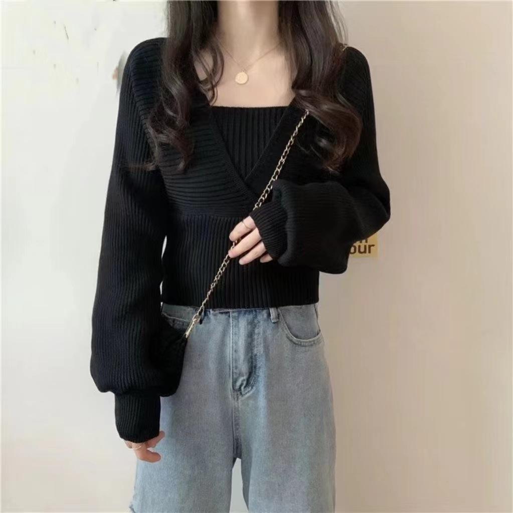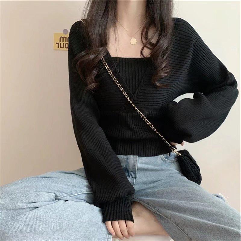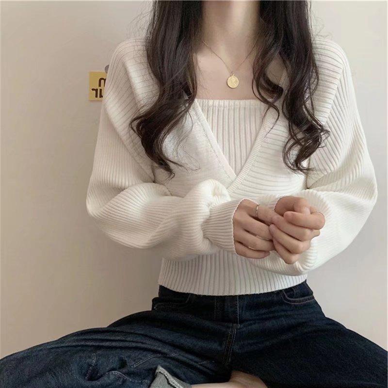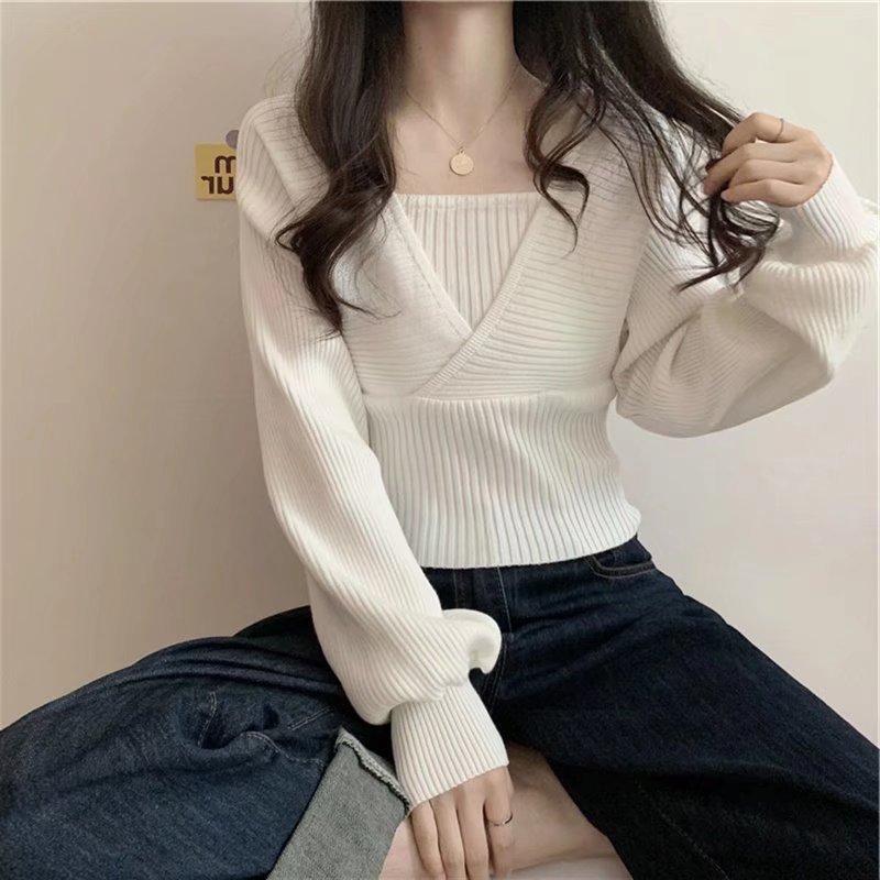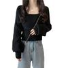 Suéter de dos piezas con cuello cuadrado y mangas abullonadas para mujer, estilo coreano, diseño de nicho, novedad de primavera de 2024