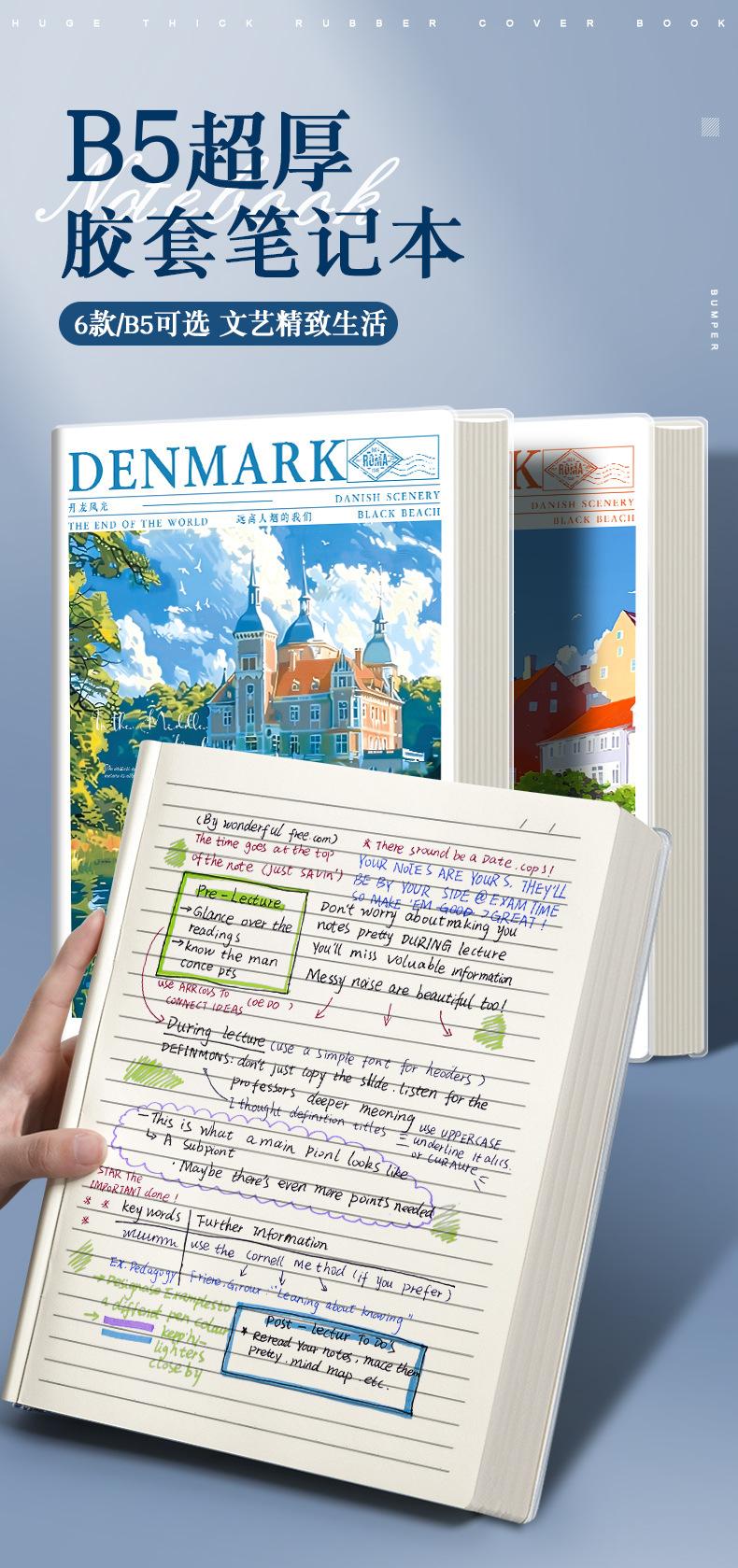 Funda de goma de alta calidad con tacto de piel al por mayor funda de goma para cuaderno estilo nórdico simple B5 bloc de notas diario ultragrueso