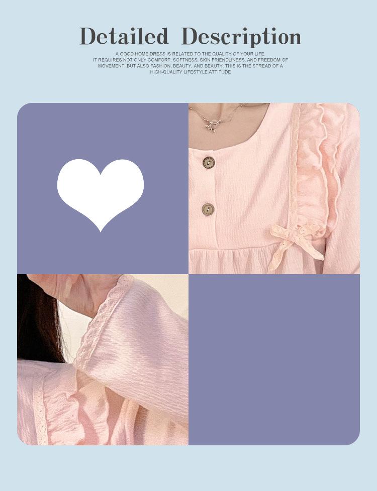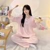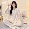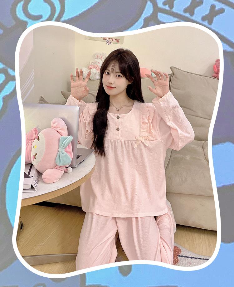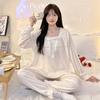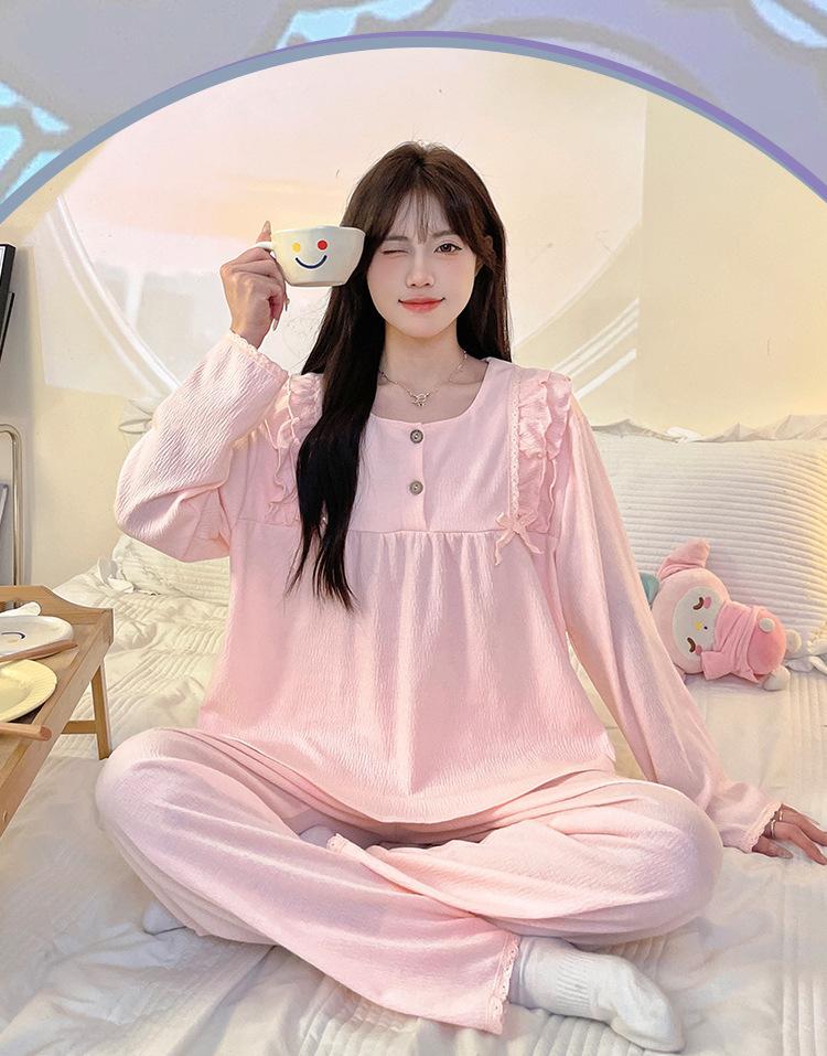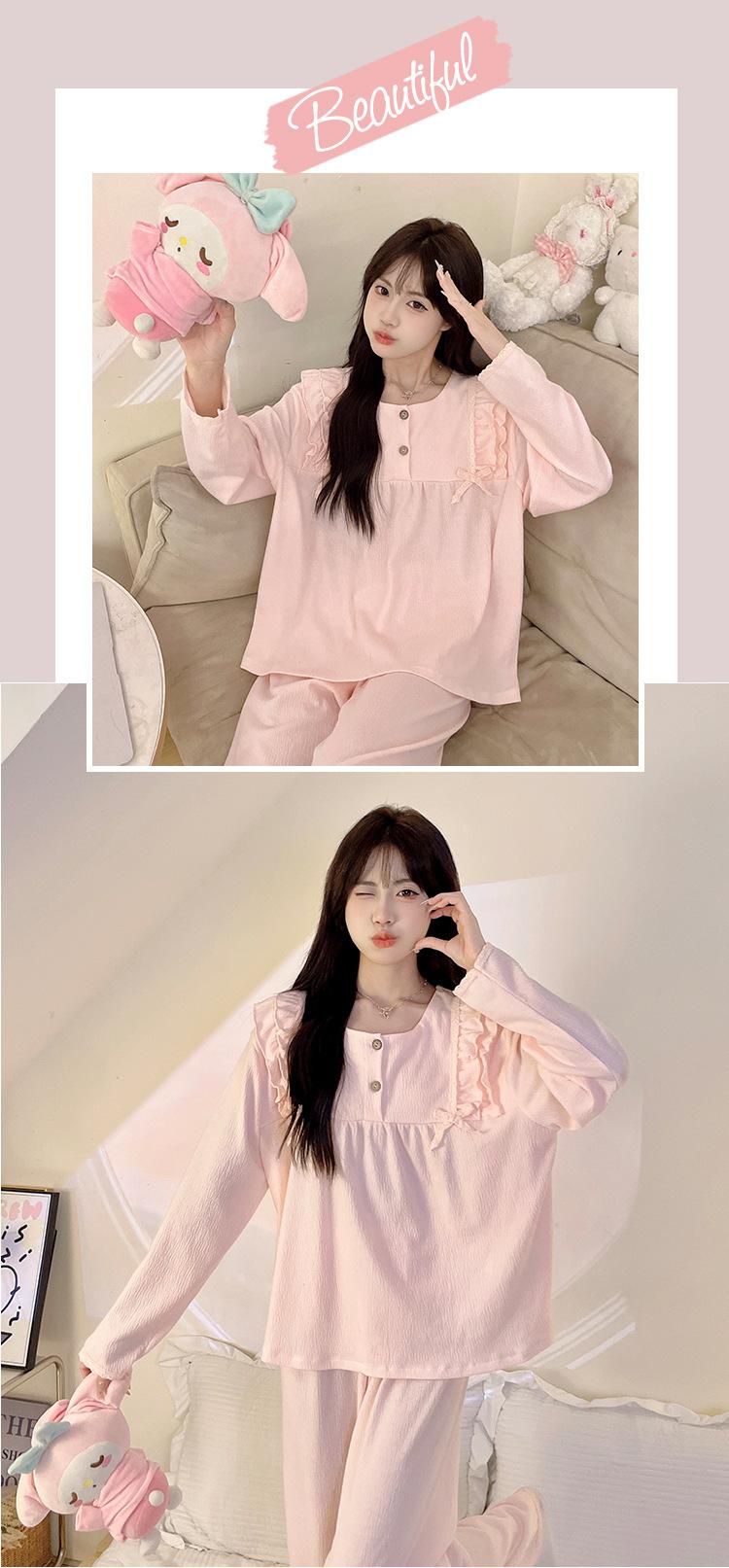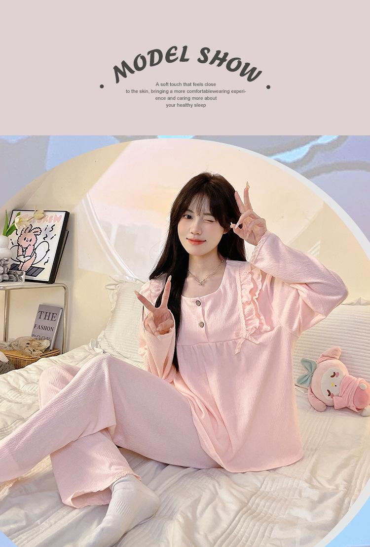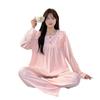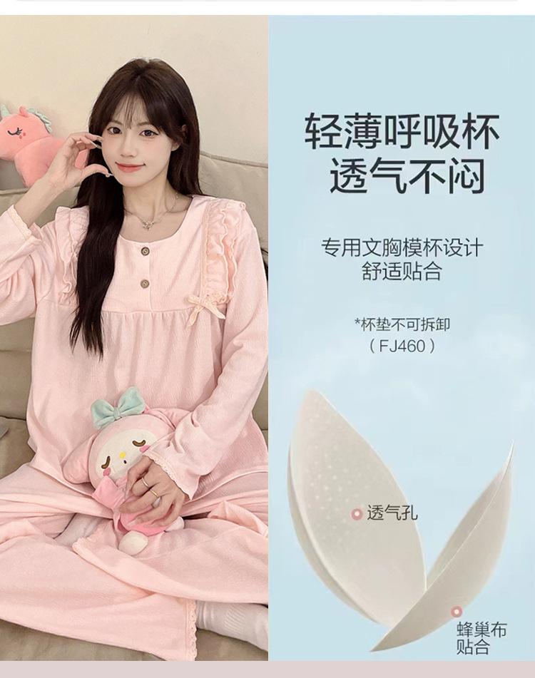 Pijamas de mujer de primavera y otoño, bonitos y dulces pantalones de manga larga con almohadilla para el pecho, ropa exterior fina y holgada para el hogar.