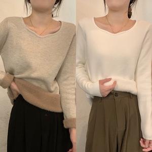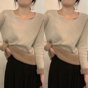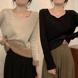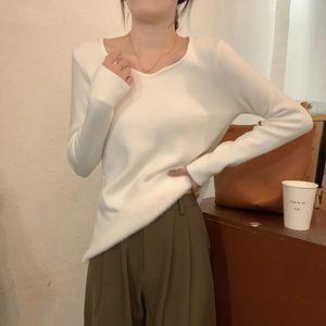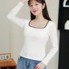 Primavera y otoño 2024 Nueva camisa ajustada de cuello cuadrado con parte inferior Otoño e Invierno Más terciopelo Manga larga Suéter francés Top Ropa de mujer