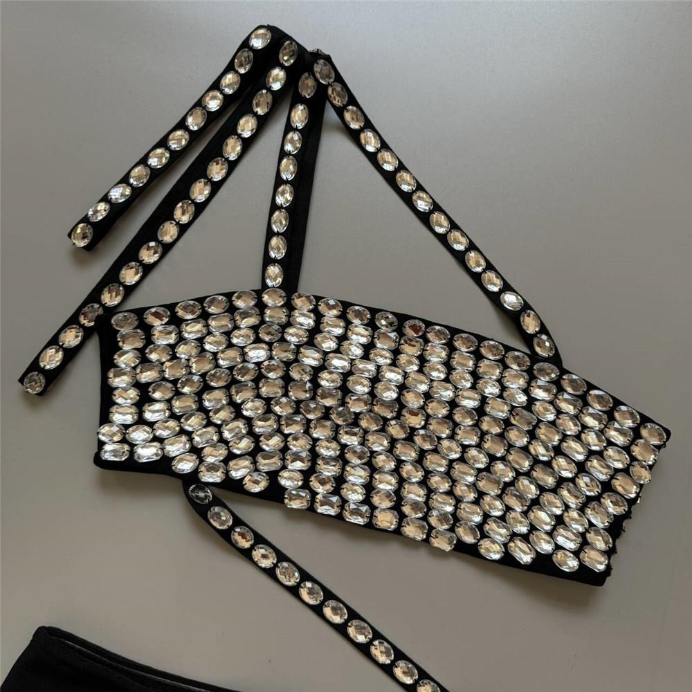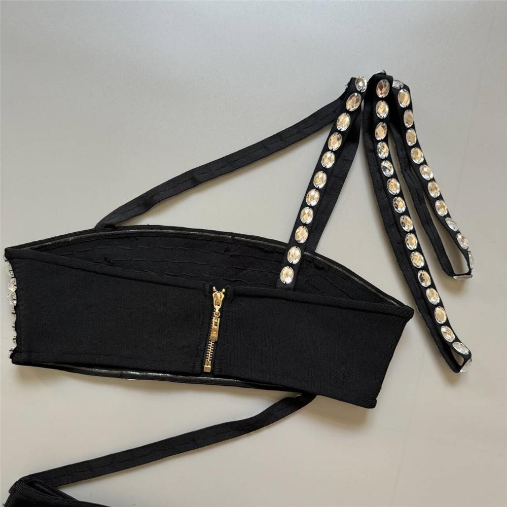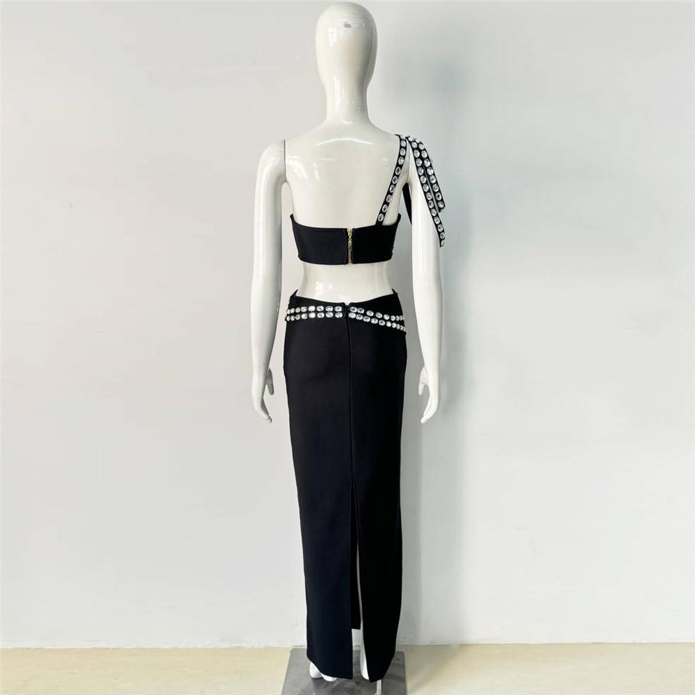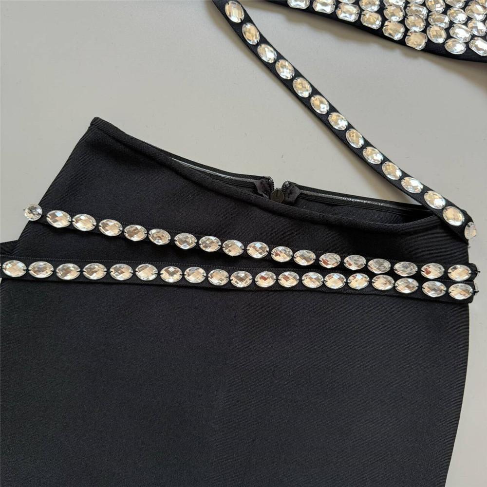 Nuevo conjunto de falda de vendaje con diamantes de imitación, vestido de fiesta de banquete de moda europea y americana, top de dos piezas, falda de vendaje larga