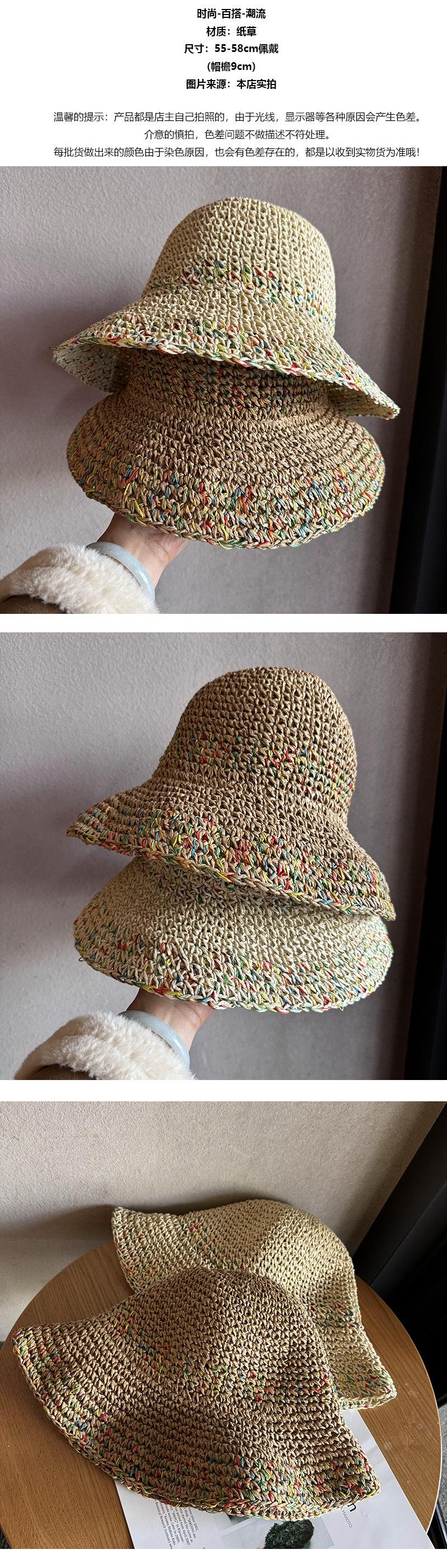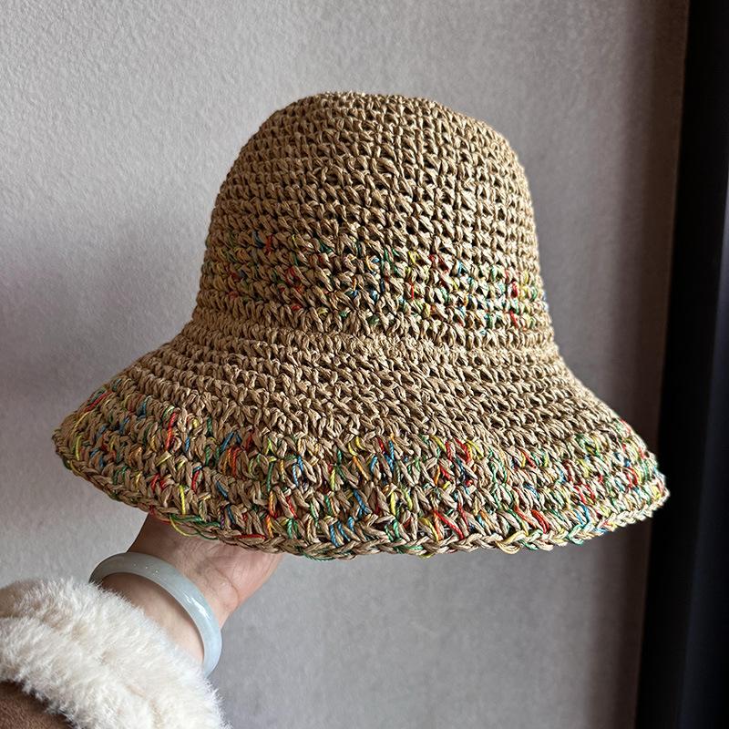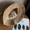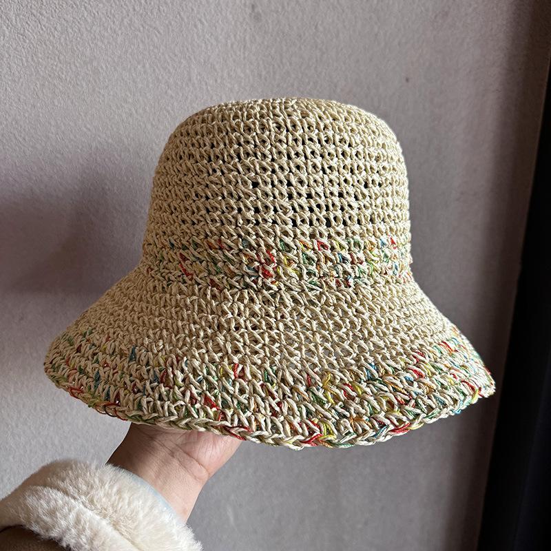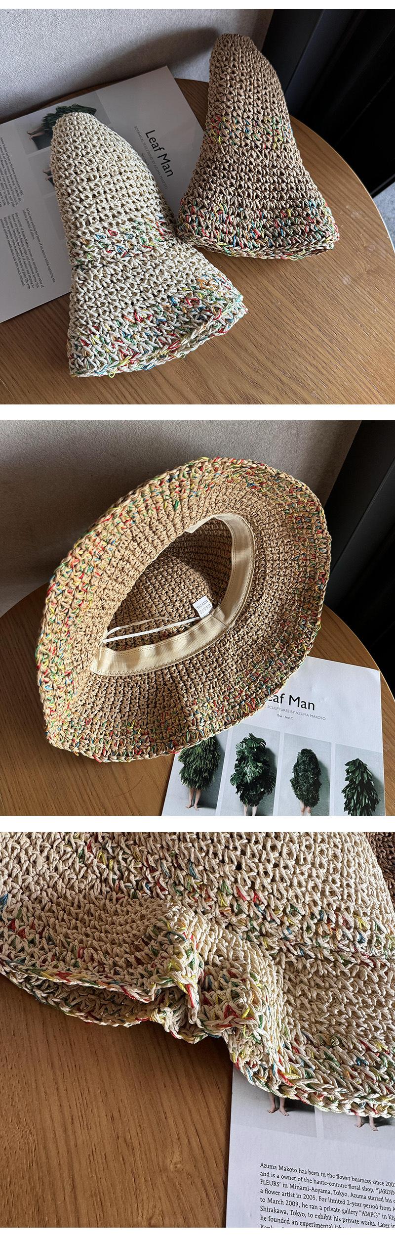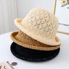 Sombrero de sol de verano hueco estilo coreano con protección solar, transpirable, no sofocante, estilo vacacional colorido, ala ancha, sombrero de paja tejido, moda femenina