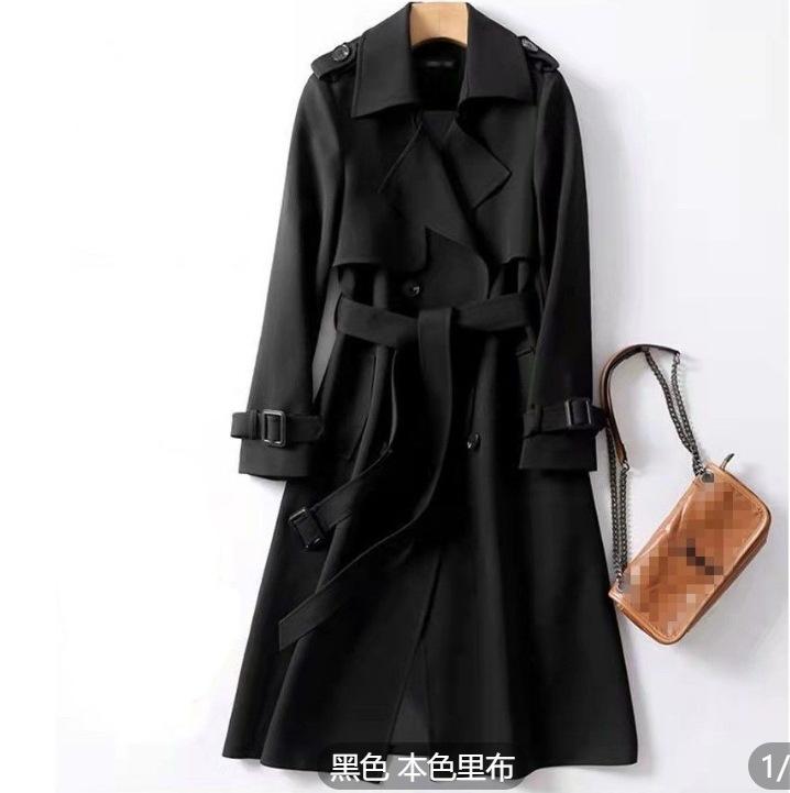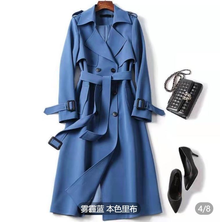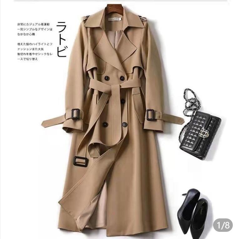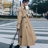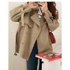 Principios de Otoño Nuevo Estilo Coreano Moda Gabardina Caqui de Largo Medio Suelta hasta la Rodilla Chaqueta Estilo Británico para Mujer