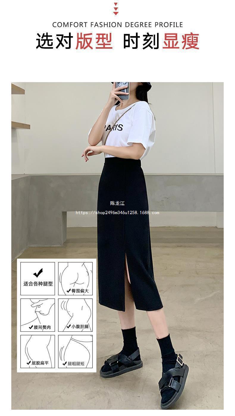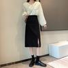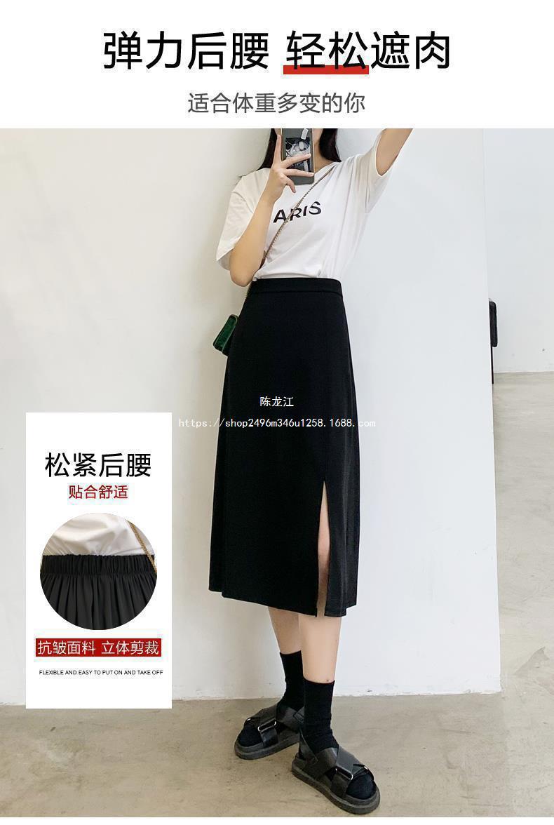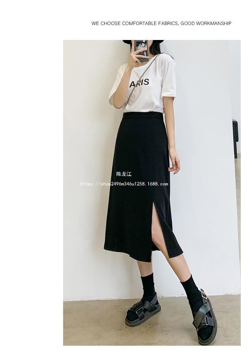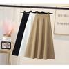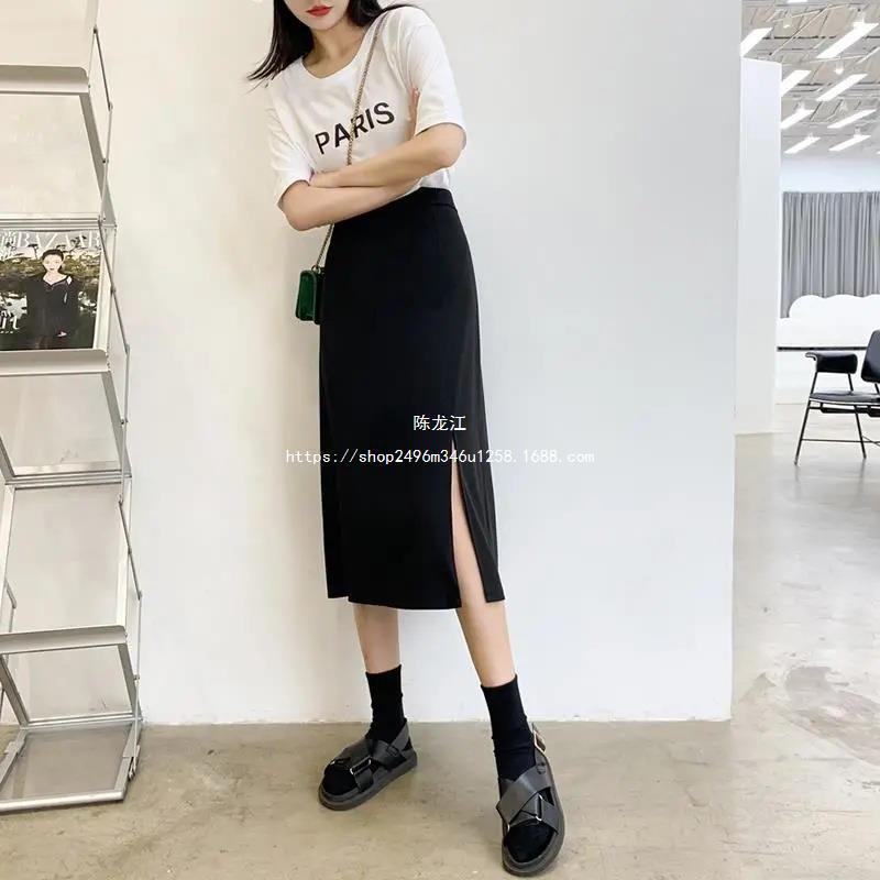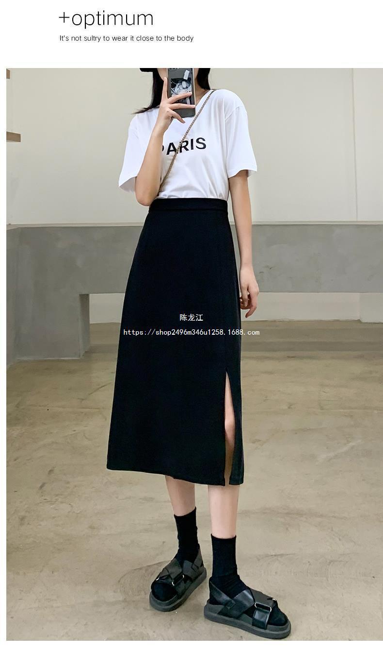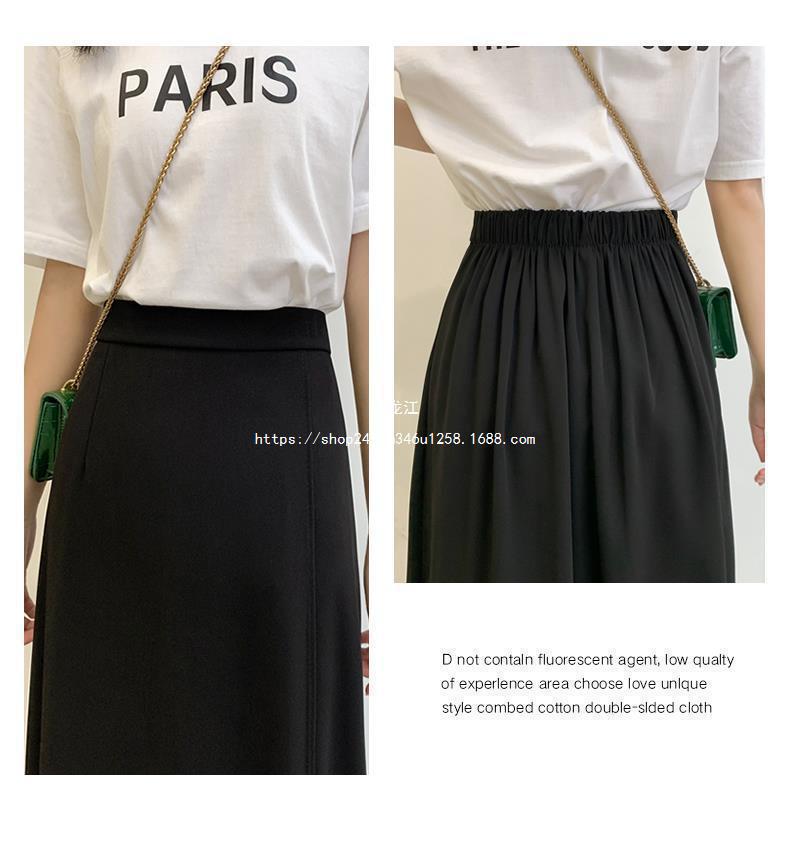 Falda Negra Línea A Cintura Alta Abertura Media Falda Drapeada Corta Larga Diseño Verano Niña Falda Larga Hasta la Rodilla