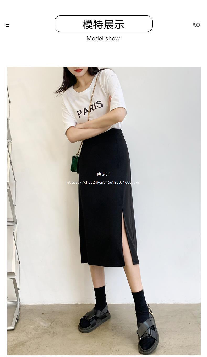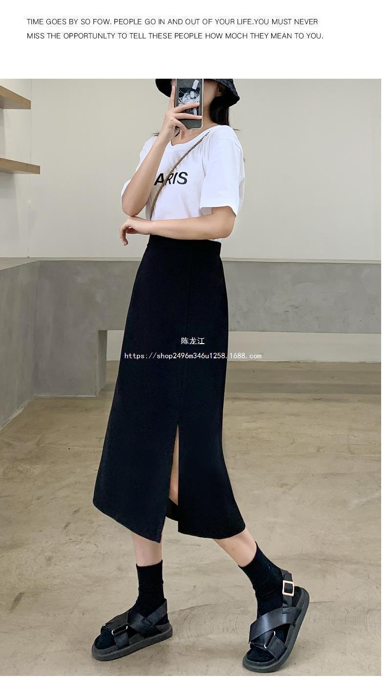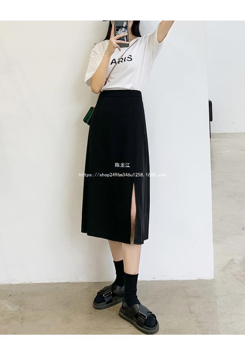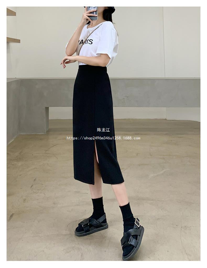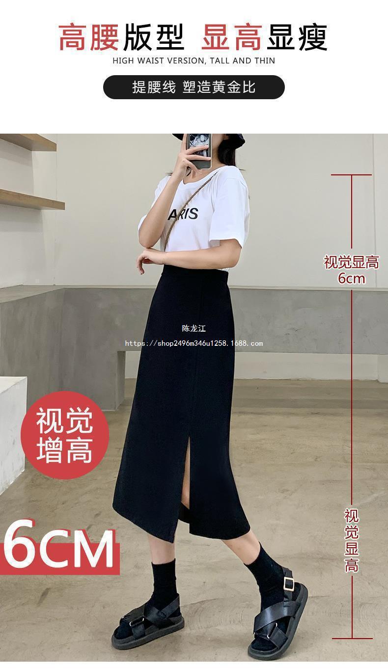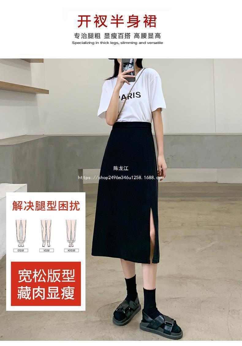 Falda Negra Línea A Cintura Alta Abertura Media Falda Drapeada Corta Larga Diseño Verano Niña Falda Larga Hasta la Rodilla