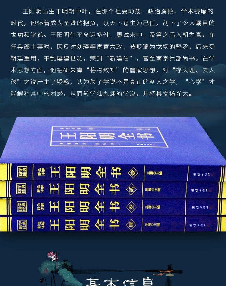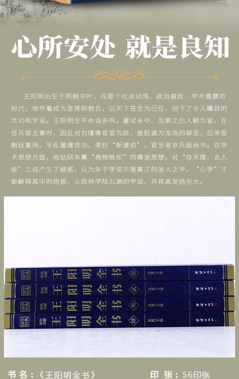 Los 4 volúmenes del libro completo de Wang Yangming, con explicación detallada a color de la unidad del conocimiento y la práctica, la filosofía de vida, el autocultivo y los libros de vida.