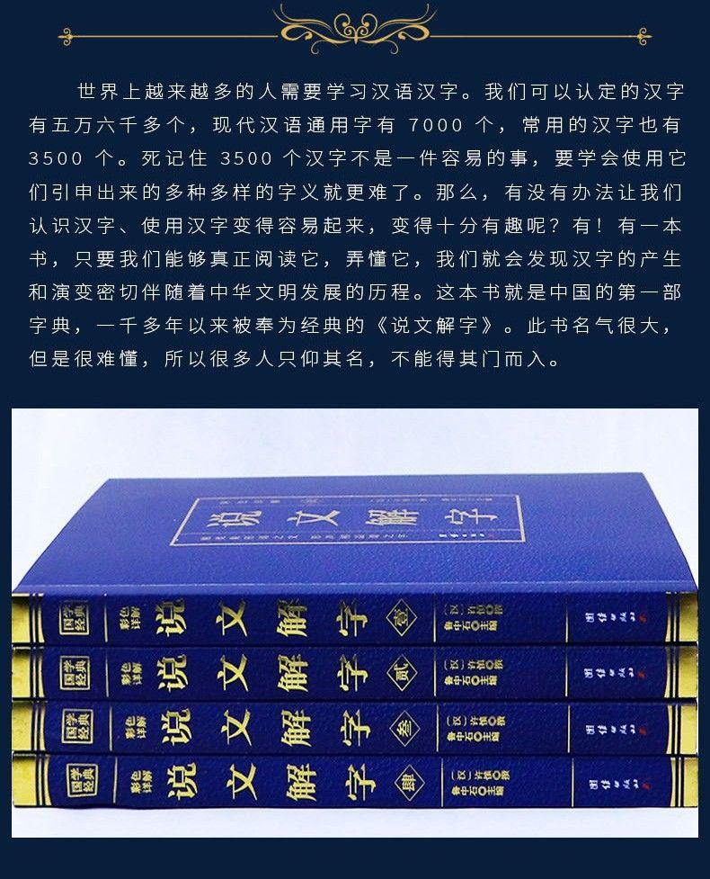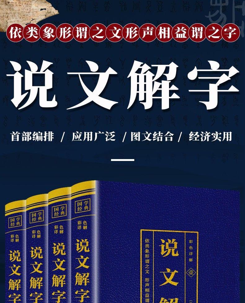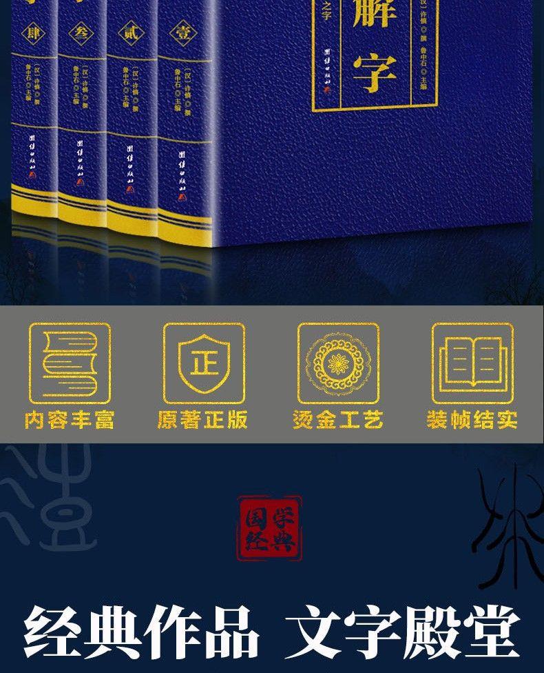Shuowen Jiezi, 4 volúmenes, explicación detallada a color, control de Wen Bai, nota completa, traducción completa, diccionario chino antiguo