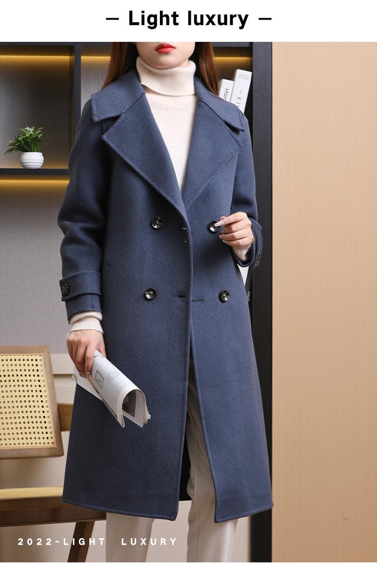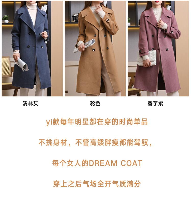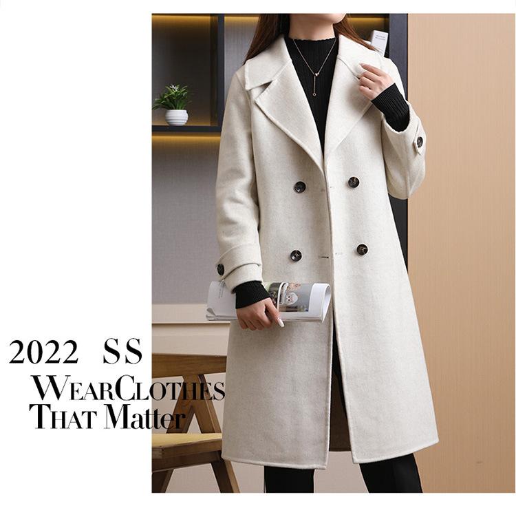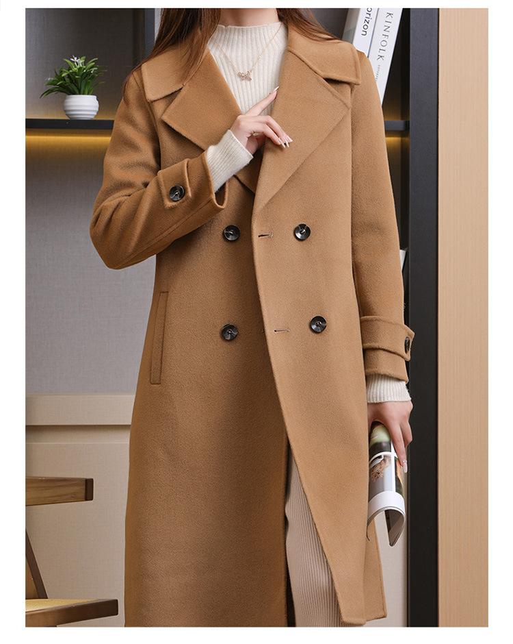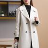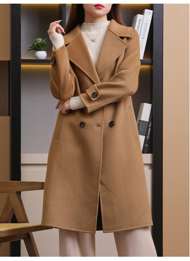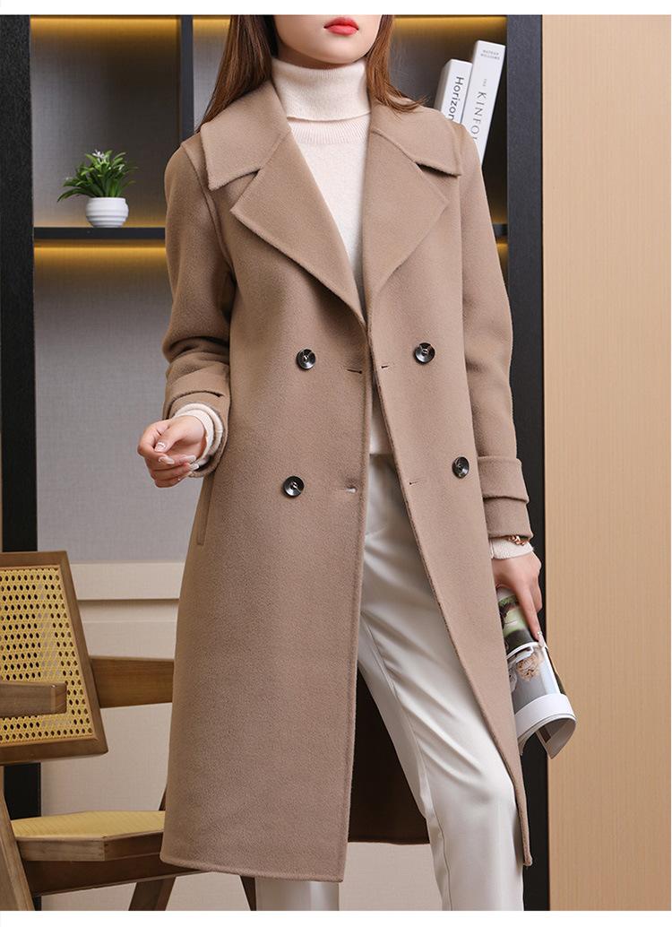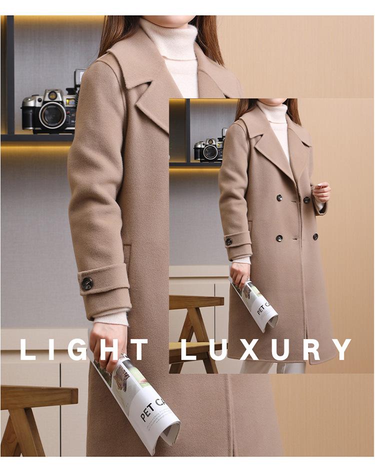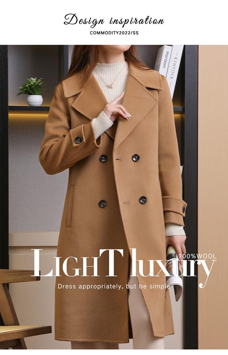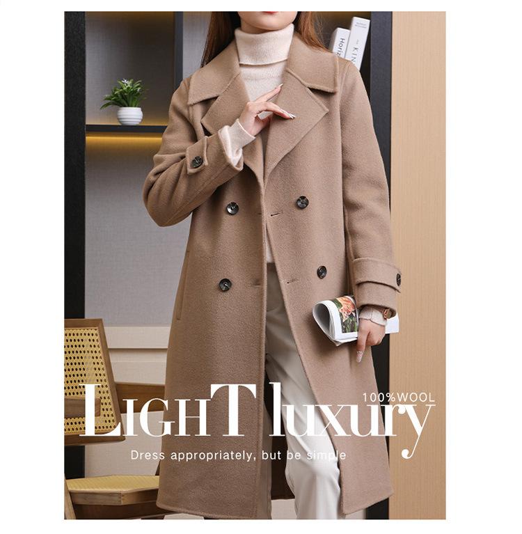 Otoño e Invierno nuevo abrigo de lana de doble cara para mujer, largo medio, versión de moda, camel de doble botonadura, exterior de lana de alta calidad
