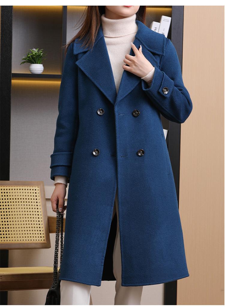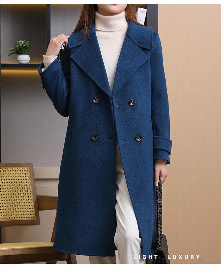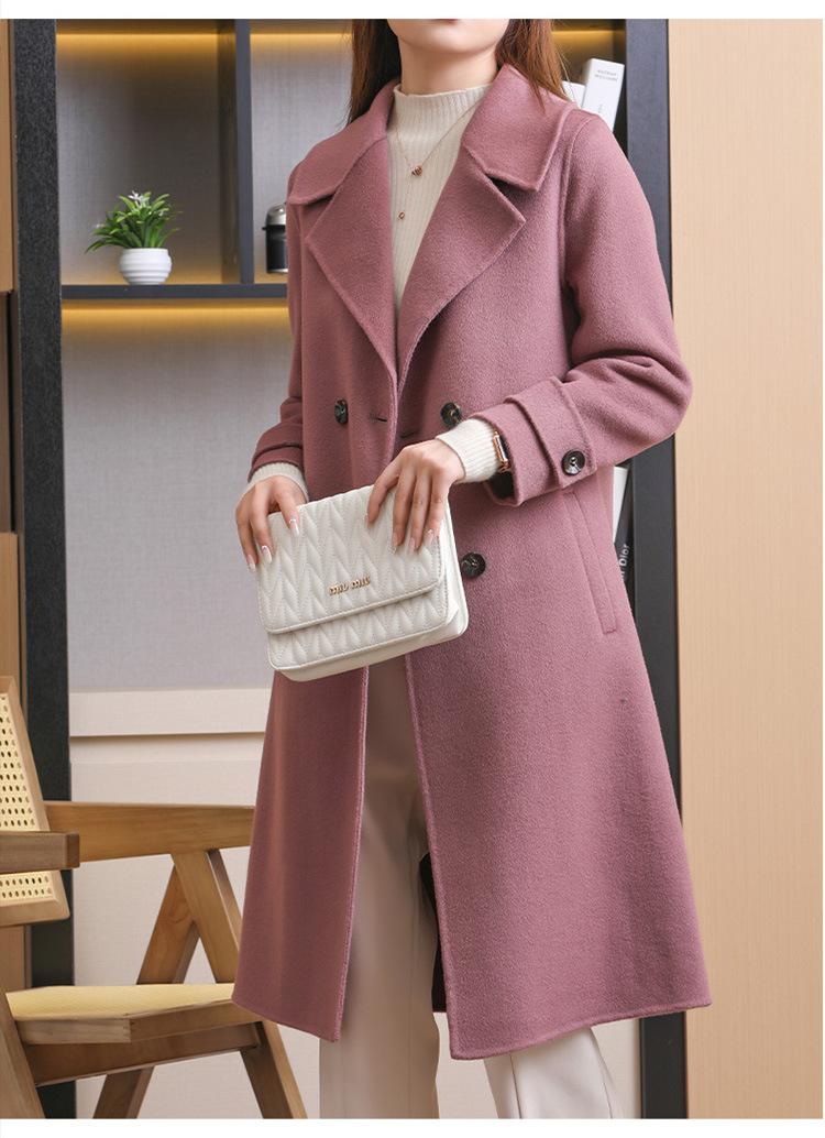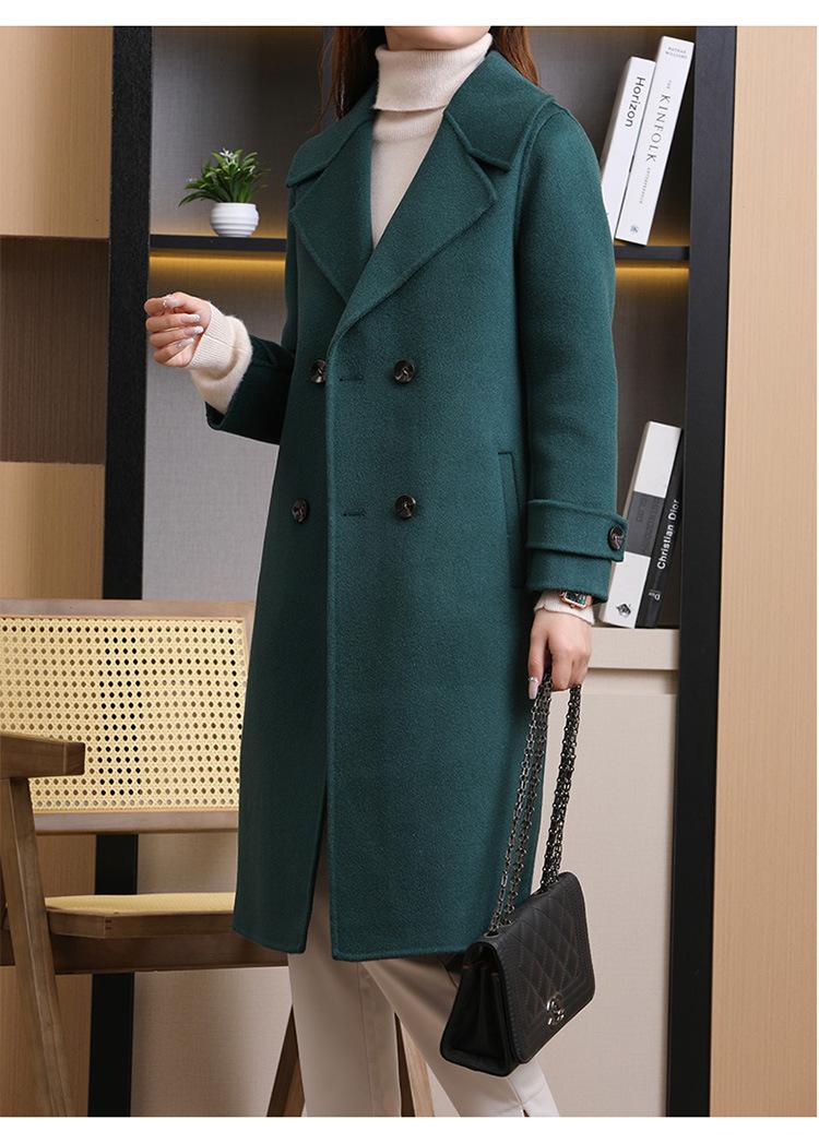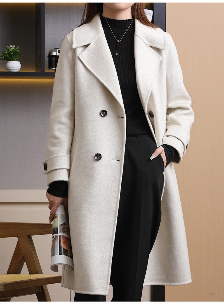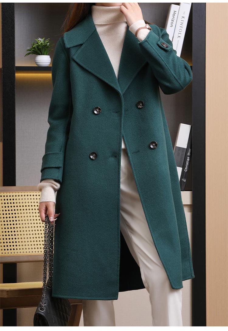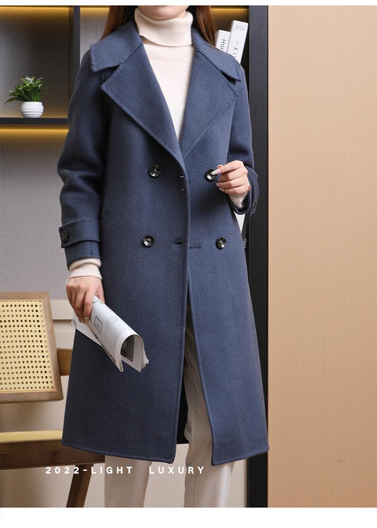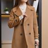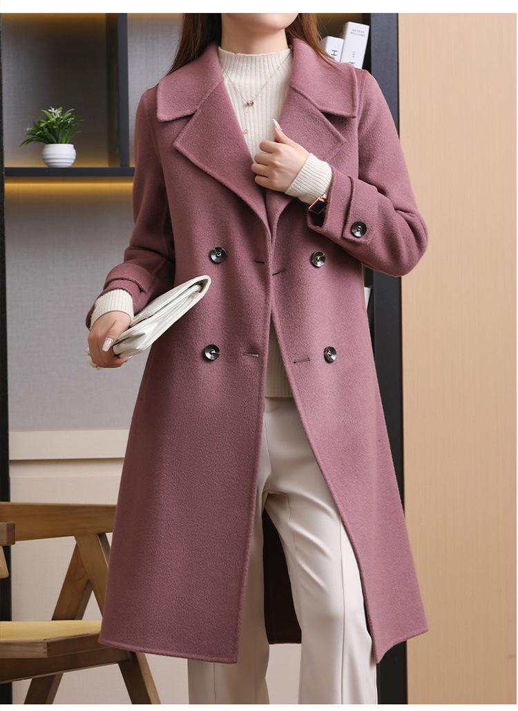 Otoño e Invierno nuevo abrigo de lana de doble cara para mujer, largo medio, versión de moda, camel de doble botonadura, exterior de lana de alta calidad