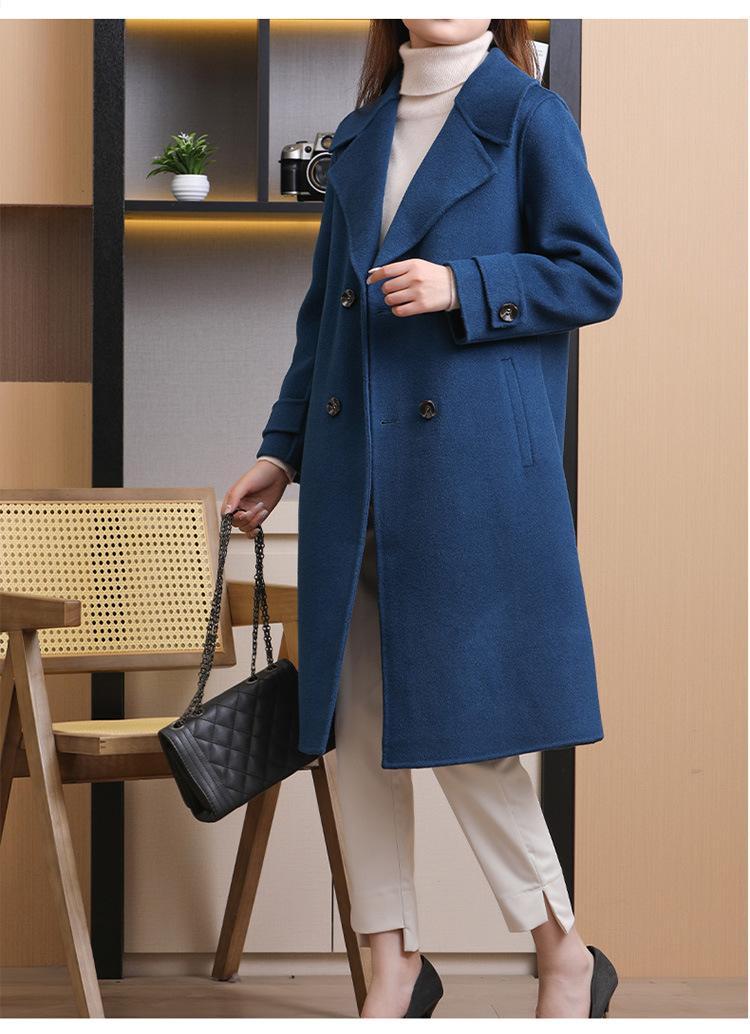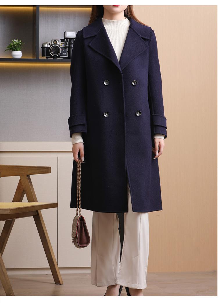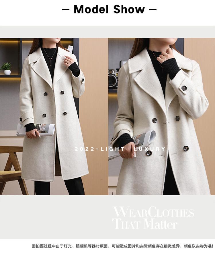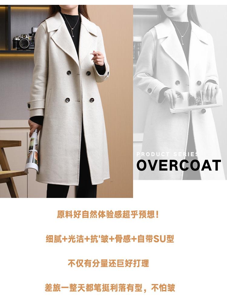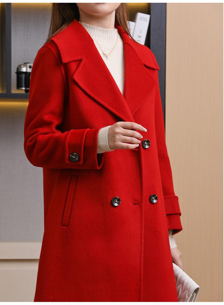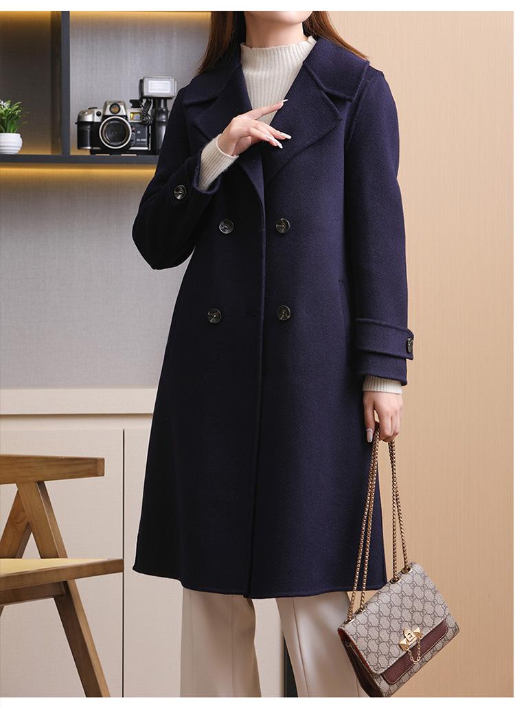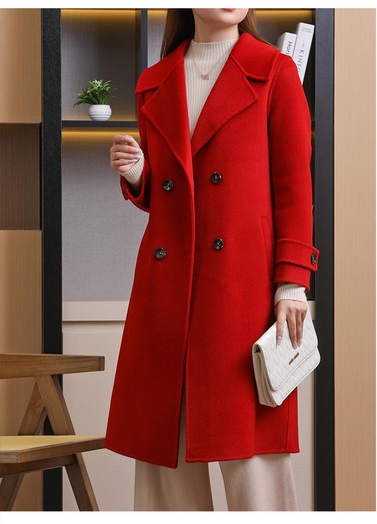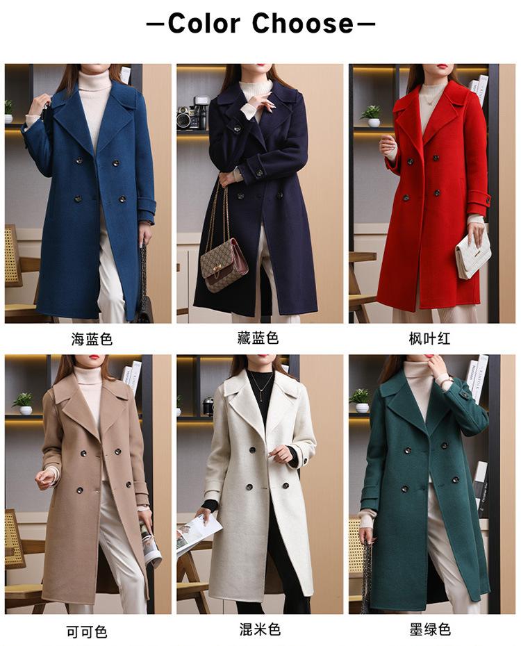 Otoño e Invierno nuevo abrigo de lana de doble cara para mujer, largo medio, versión de moda, camel de doble botonadura, exterior de lana de alta calidad