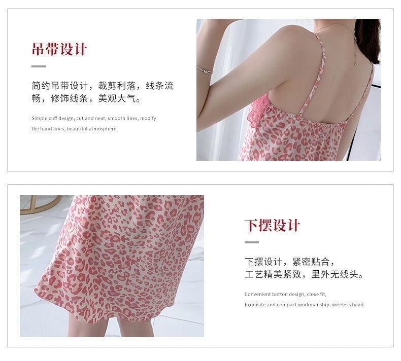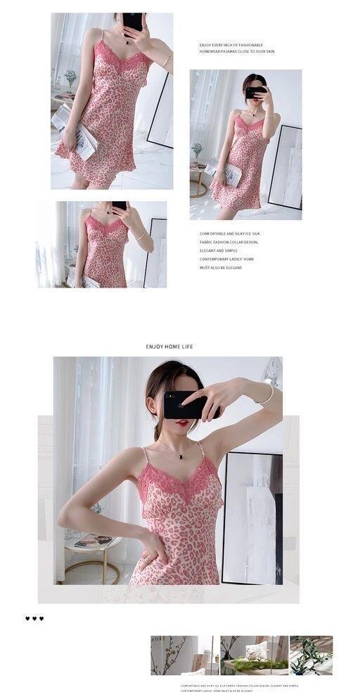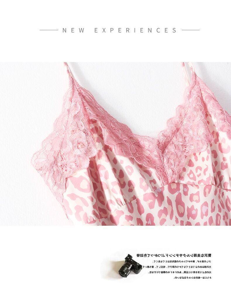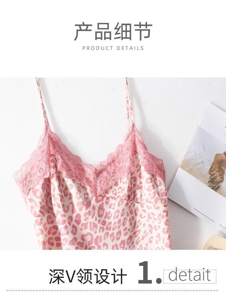 Camisón de Tirantes para Mujer 2024 Nuevo Verano Algodón Imitación Leopardo Rosa Encaje Fino Pijama Sexy Ropa para el Hogar Mujer