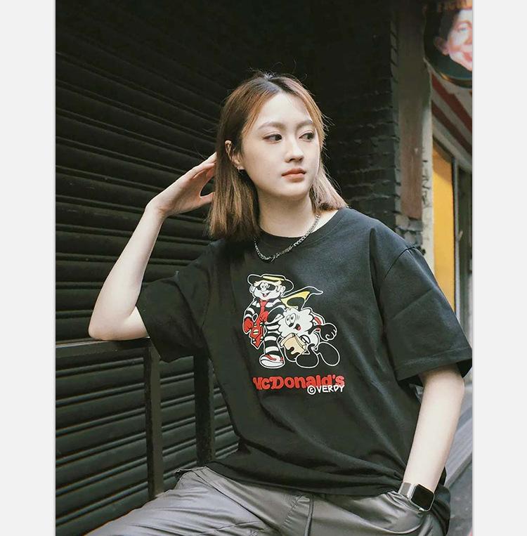 Camiseta holgada de manga corta de algodón con estampado de hamburguesa ladrona de dibujos animados de Verdy Artist Limited (co-nombre de la serie)