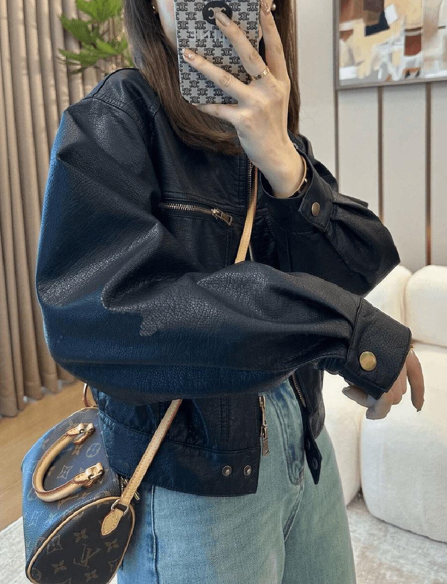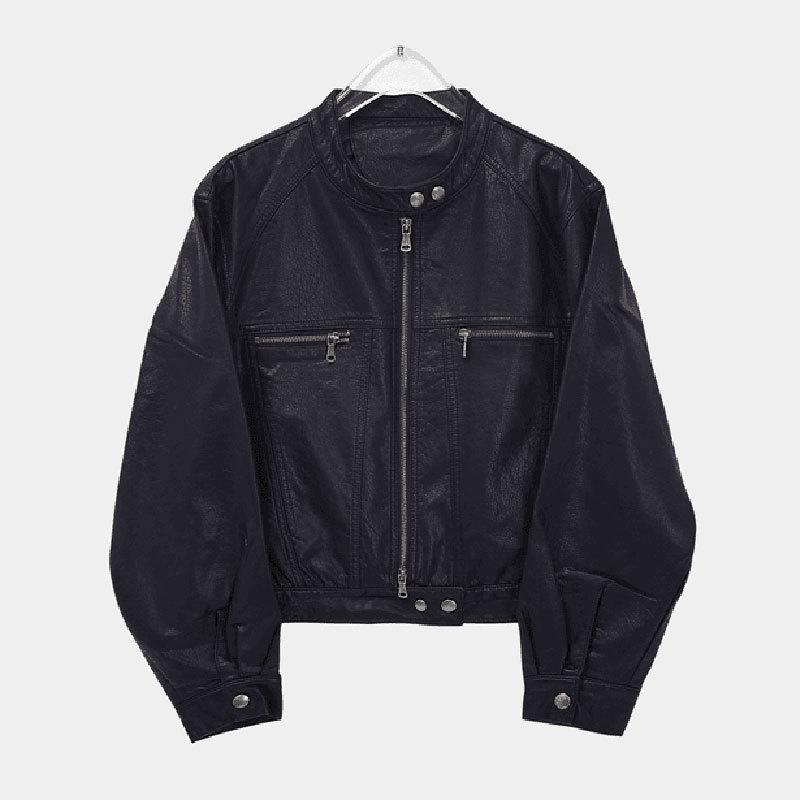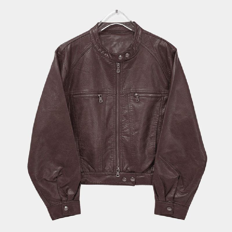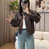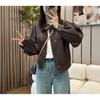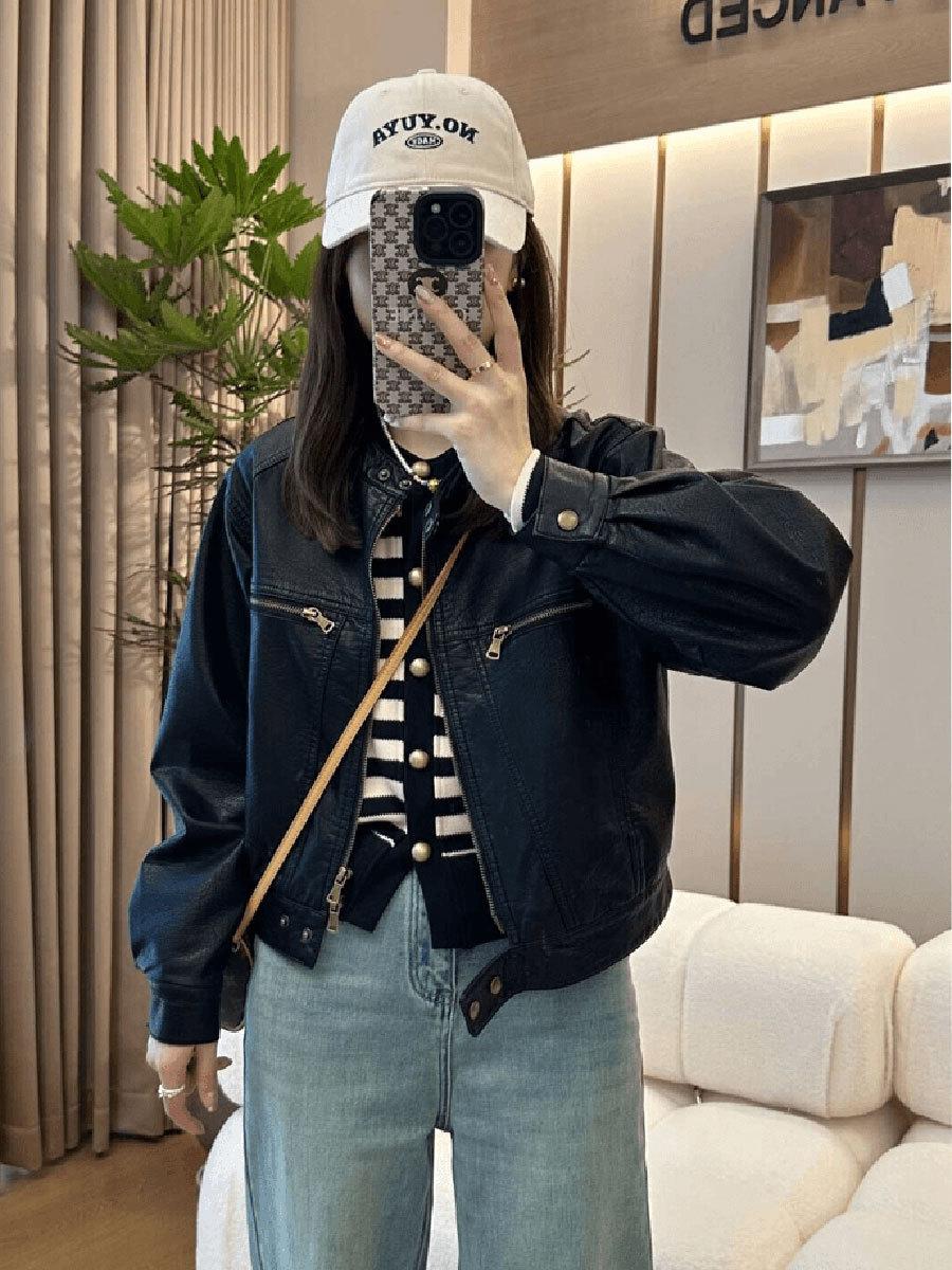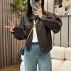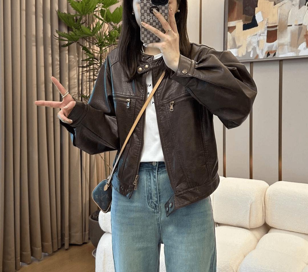 Traje de motociclista corto suelto de primavera y otoño 2024, chaqueta de cuero retro estilo americano de PU Maillard para mujer