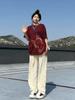 2024 Año del Dragón Año de la Vida Camiseta Roja de Manga Corta Algodón Suelto Festivo Base Media Manga Ropa para Hombre y Mujer Fook Dorado Caliente