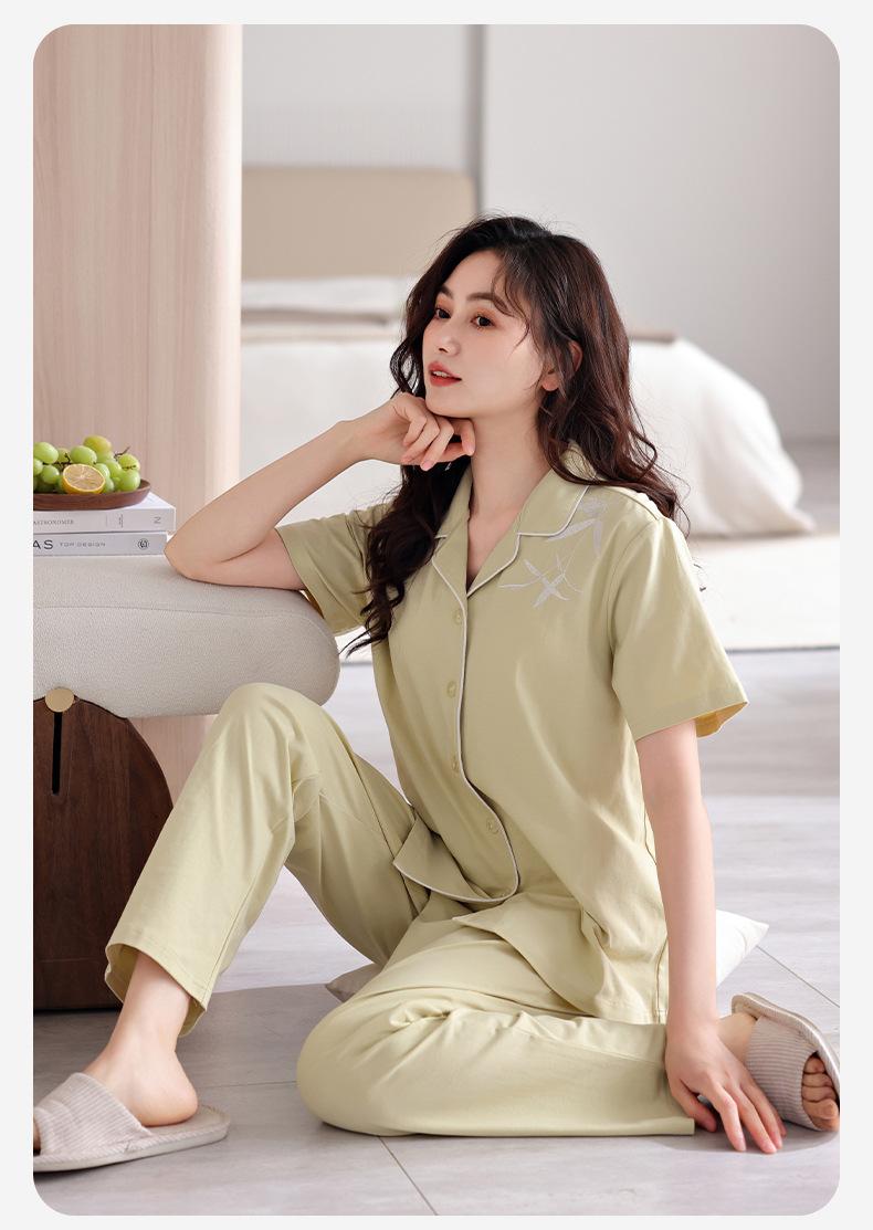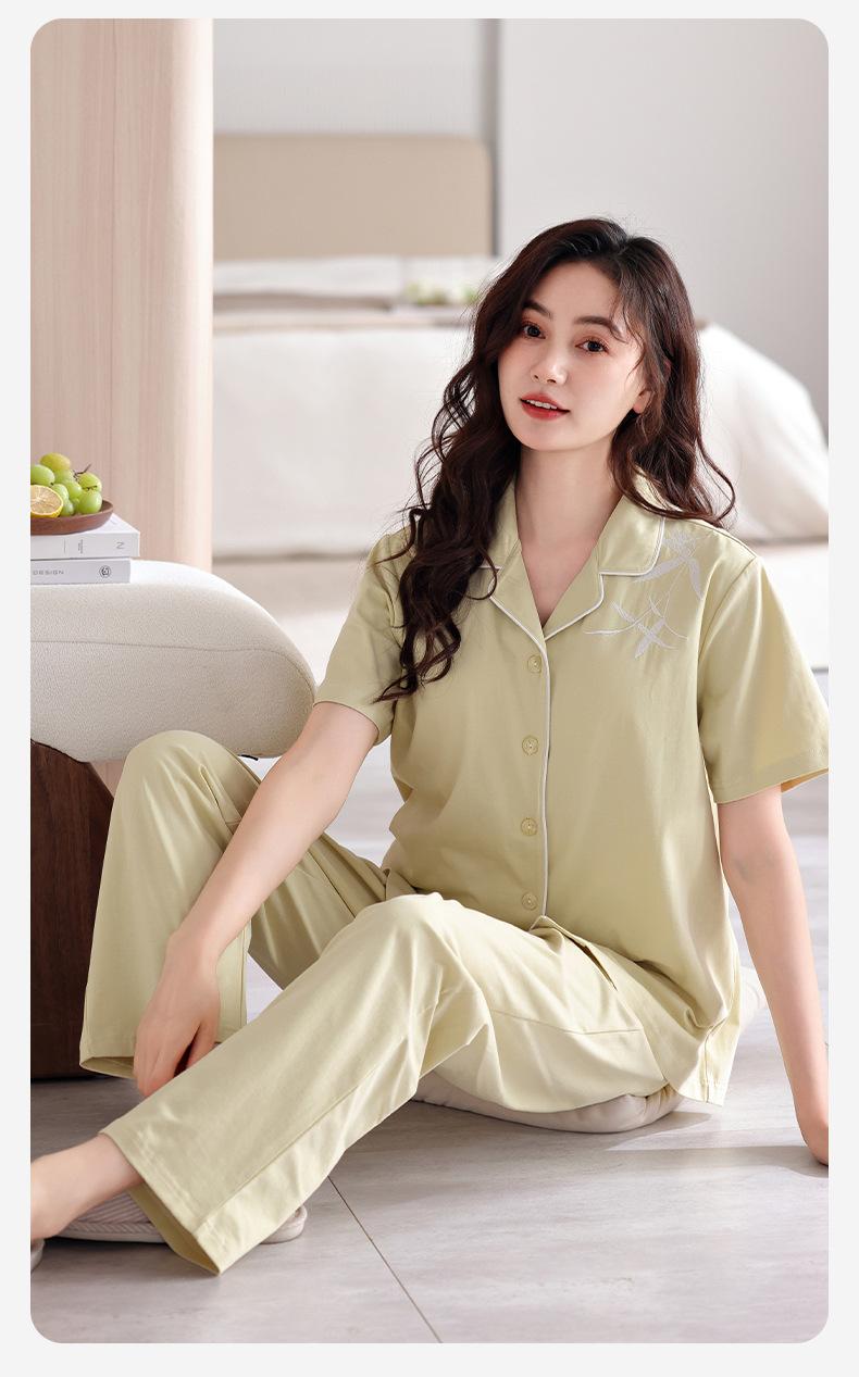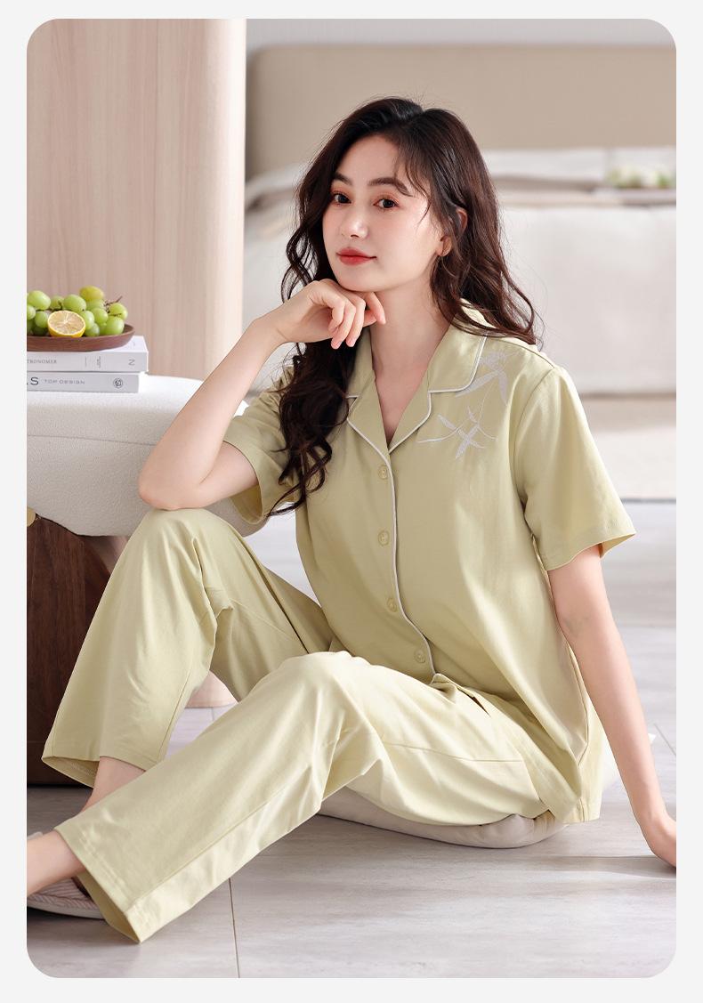 Pijama de verano para mujer, de algodón puro, de manga corta, para el hogar, cárdigan fino de verano, traje de talla grande