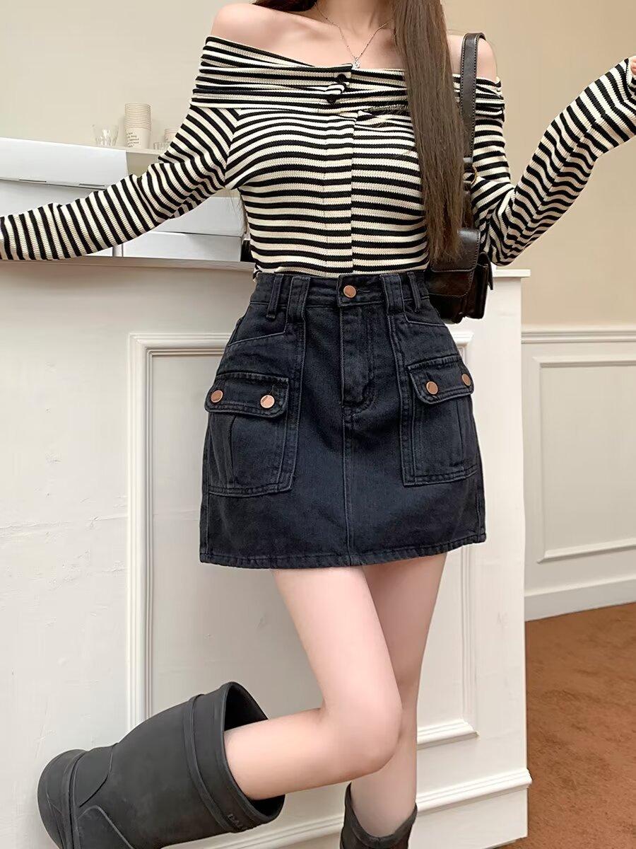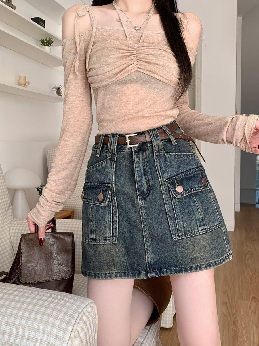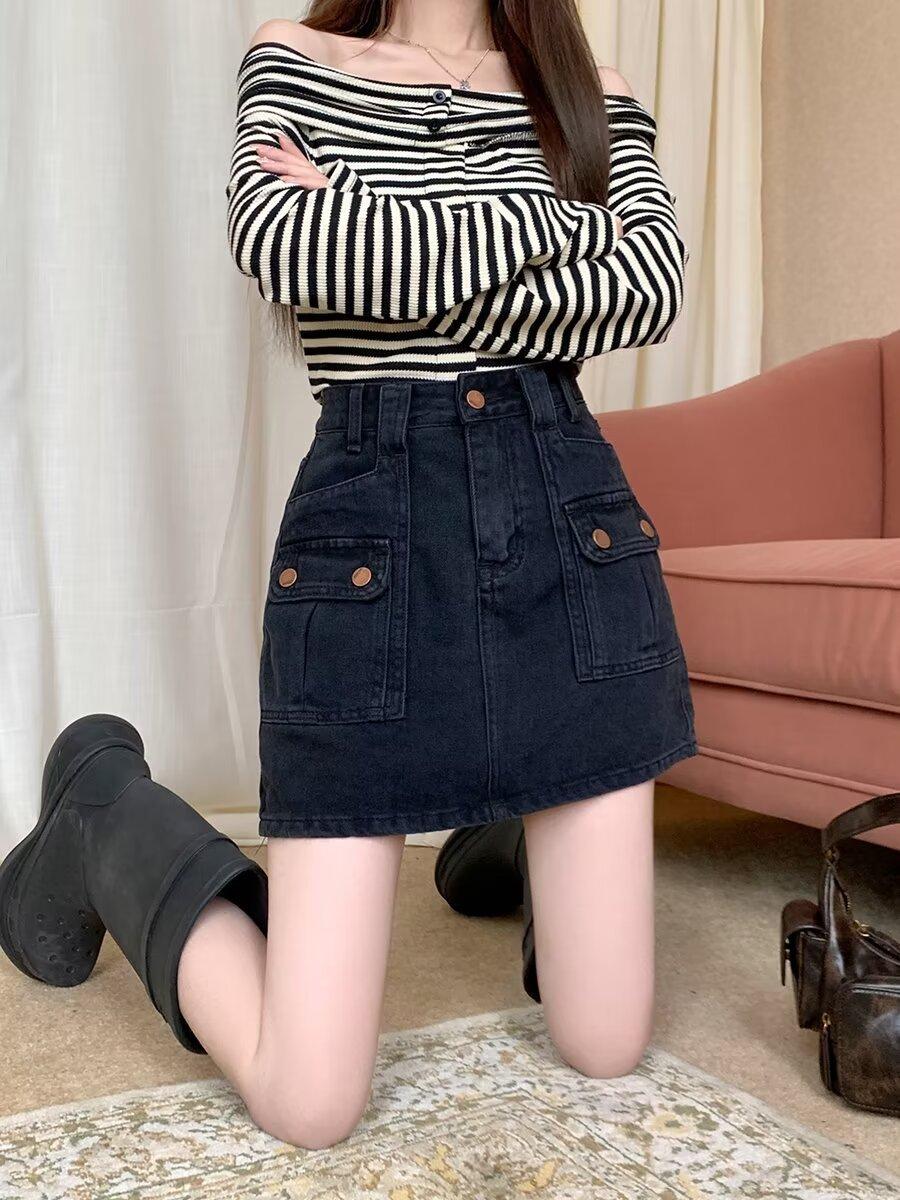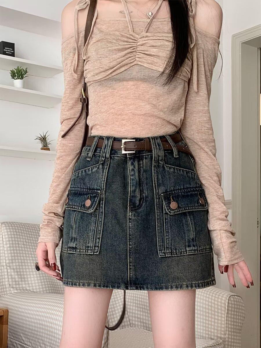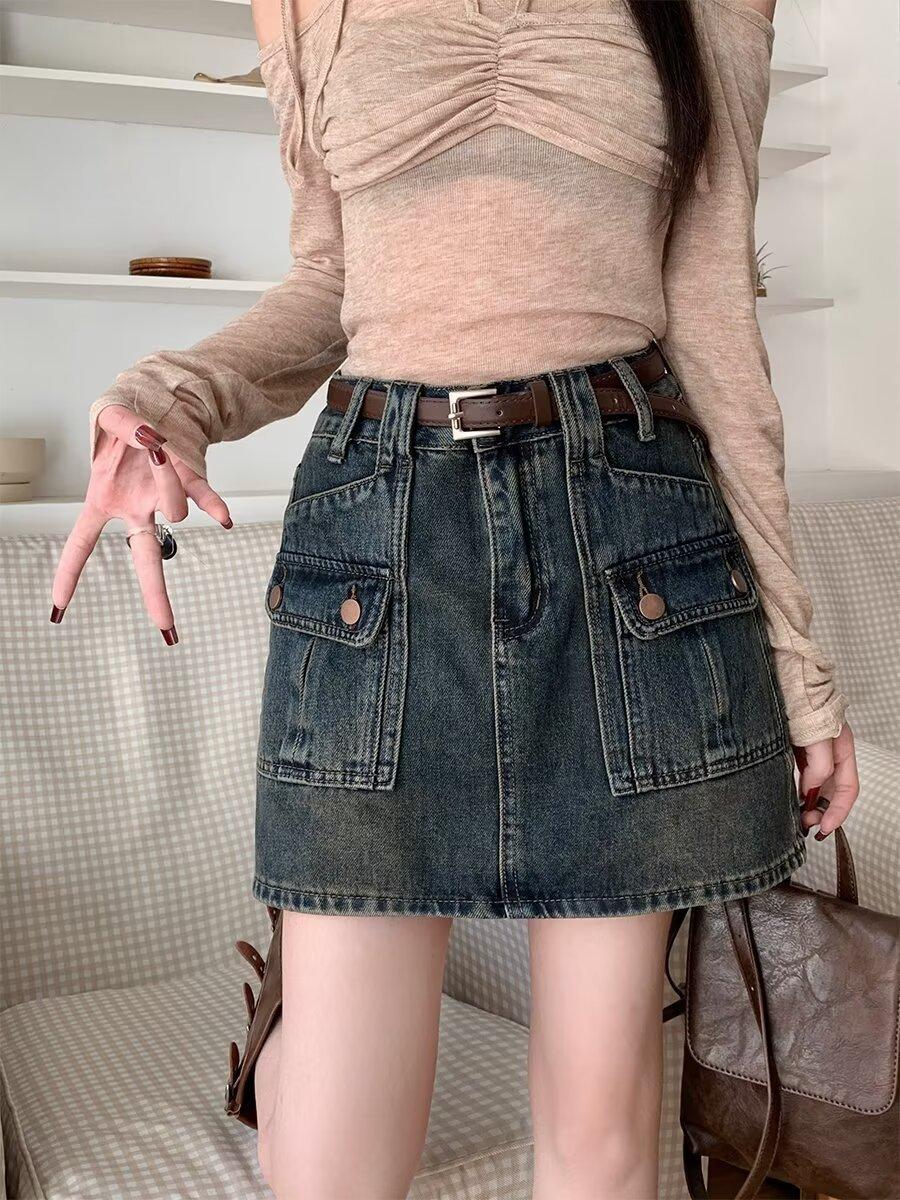 Falda retro de talla grande para mujer, nueva falda de estilo americano para mujer, falda adelgazante de cintura alta, falda vaquera de trabajo para chica gordita