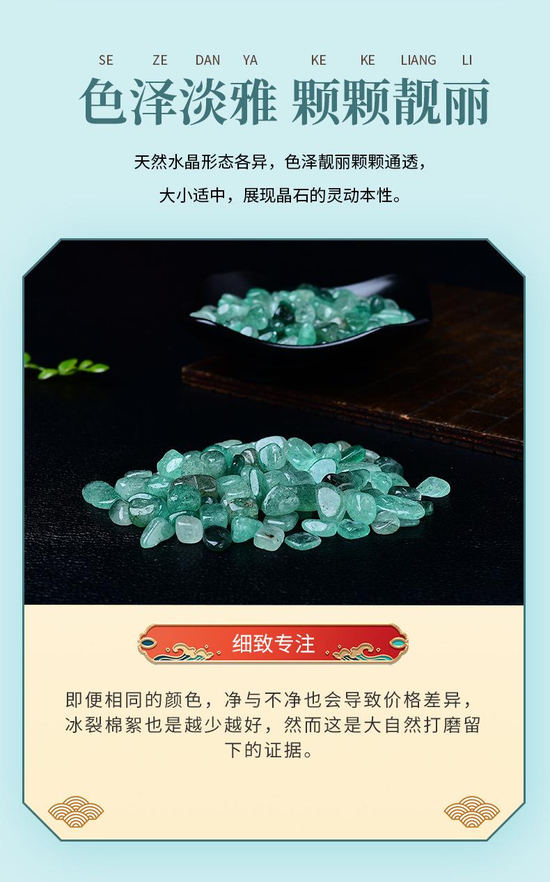 Venta al por mayor de fábrica grava de cristal de fresa verde natural de partícula pequeña lecho para pecera maceta paisajismo piedra decorativa para Buda