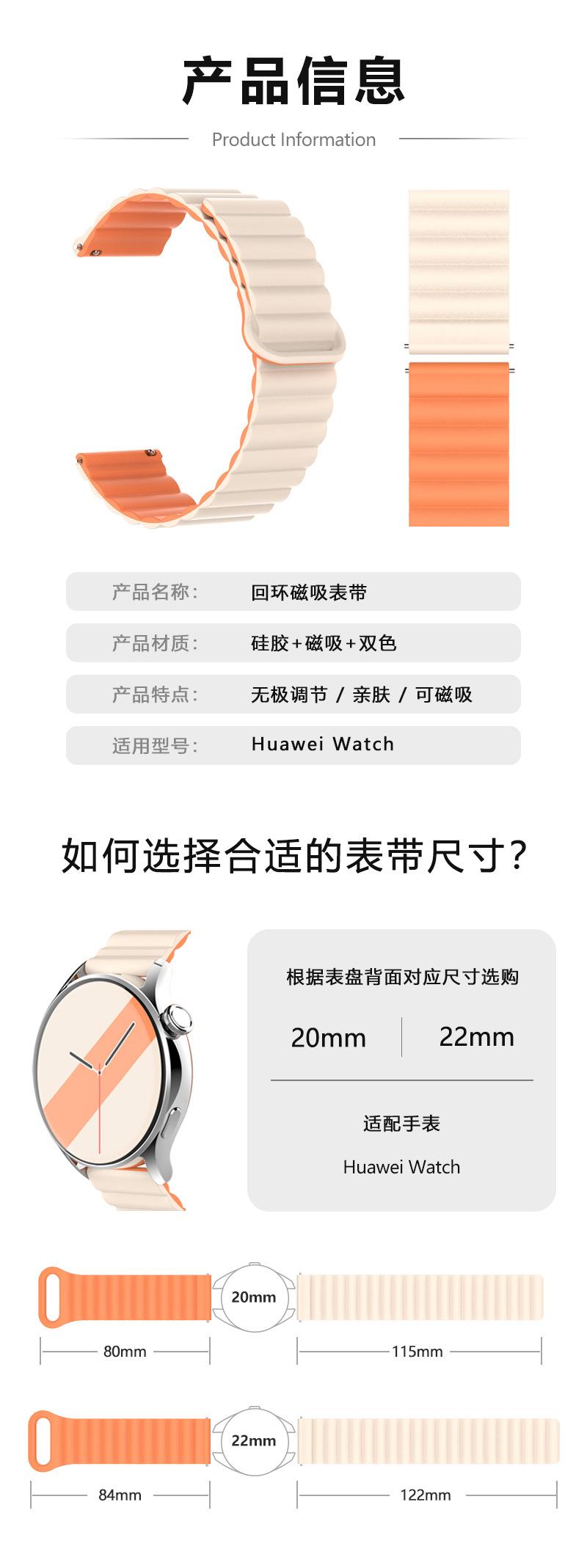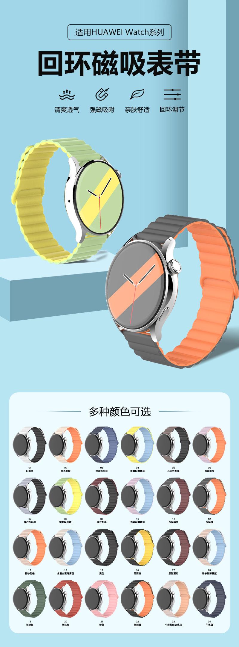 Adecuado para Gt5 Huawei Watch5 Correa de Reloj Bucle Hebilla Magnética de Silicona Bicolor Correa de Reloj Inteligente Universal Samsung
