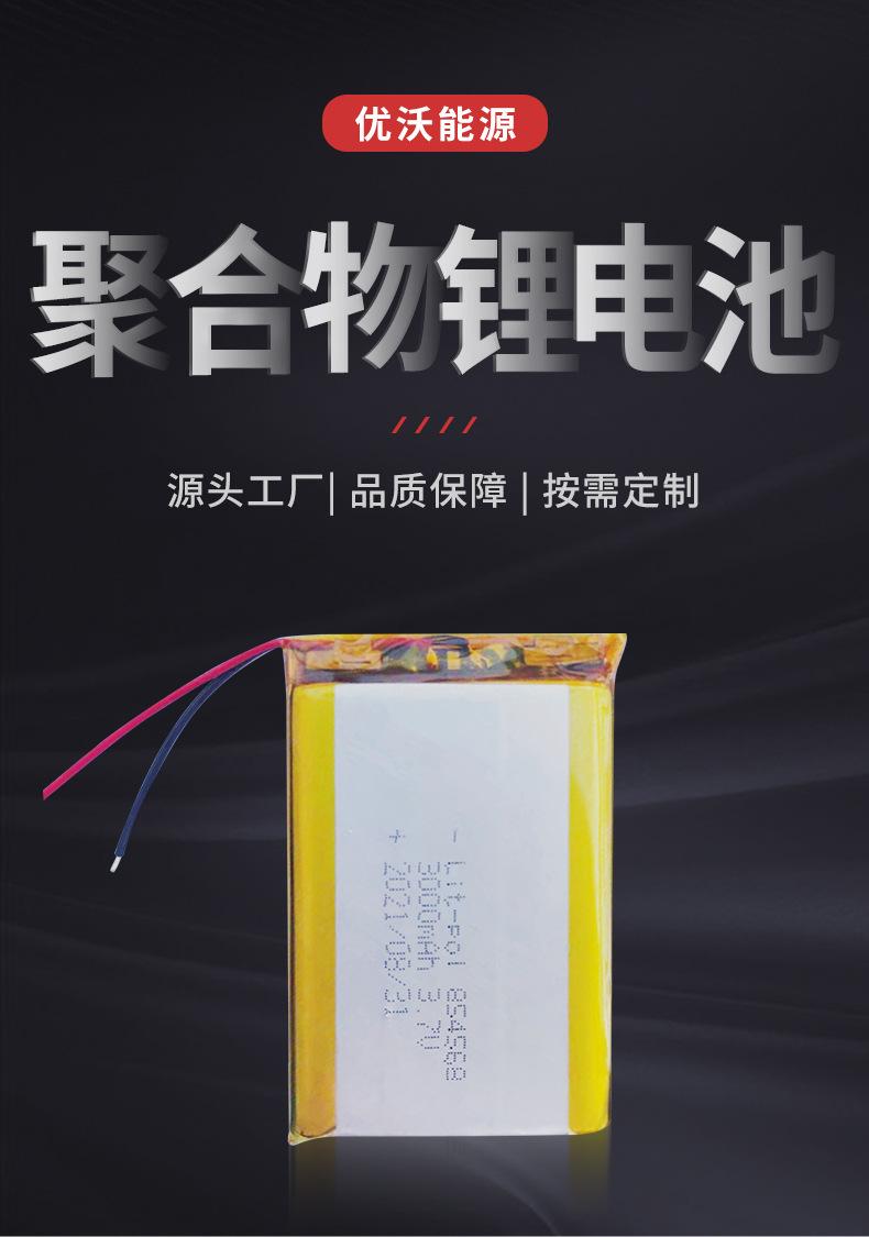 Batería de polímero de litio 854568 Un producto de núcleo de batería Instrumento de belleza Bluetooth Carga de tesoro Batería de polímero 3000 mA