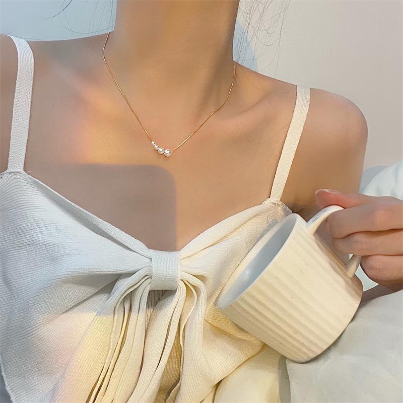 Collar de cuatro perlas para mujer, collar de diseño de nicho de lujo ligero, accesorios de estilo simple y versátil, cadena de clavícula de temperamento de lujo ligero