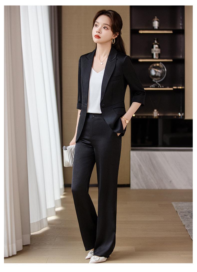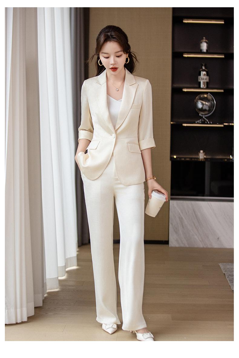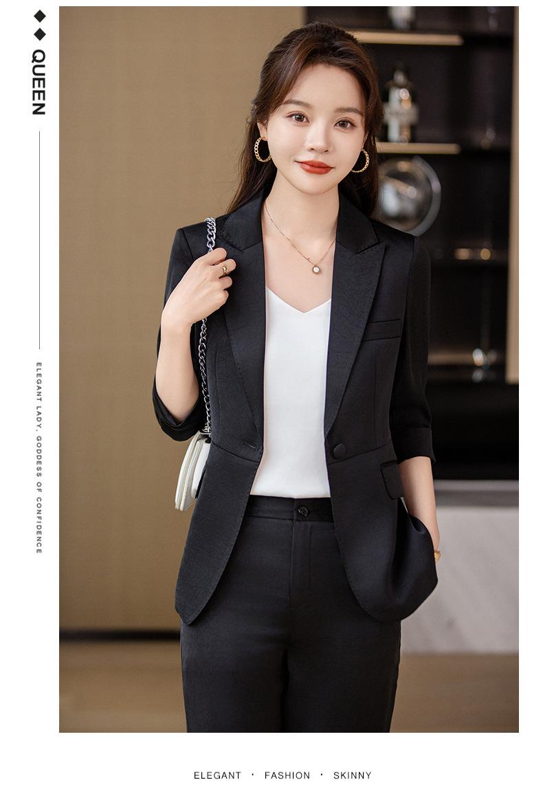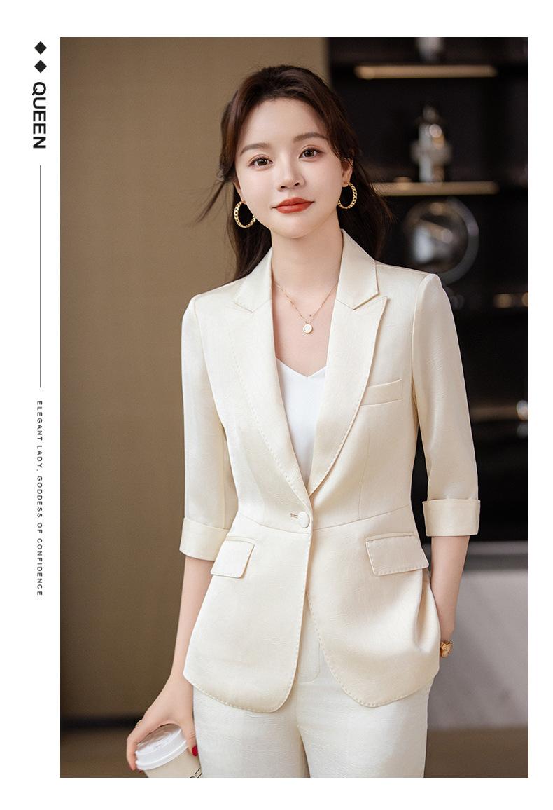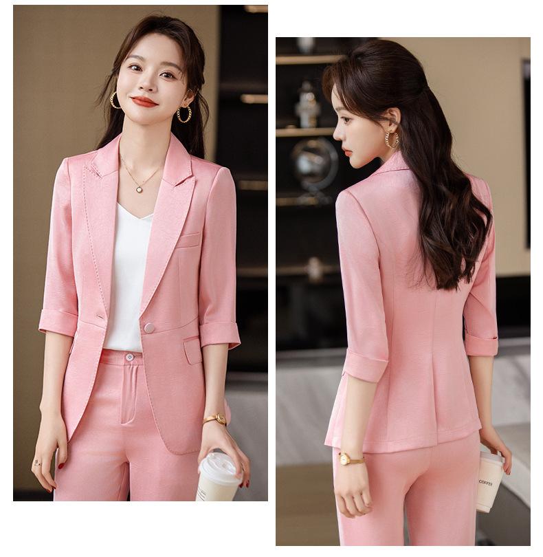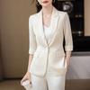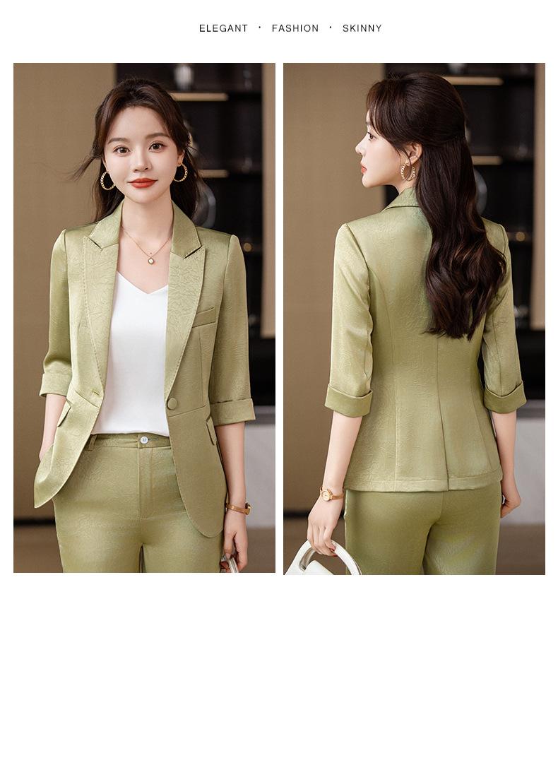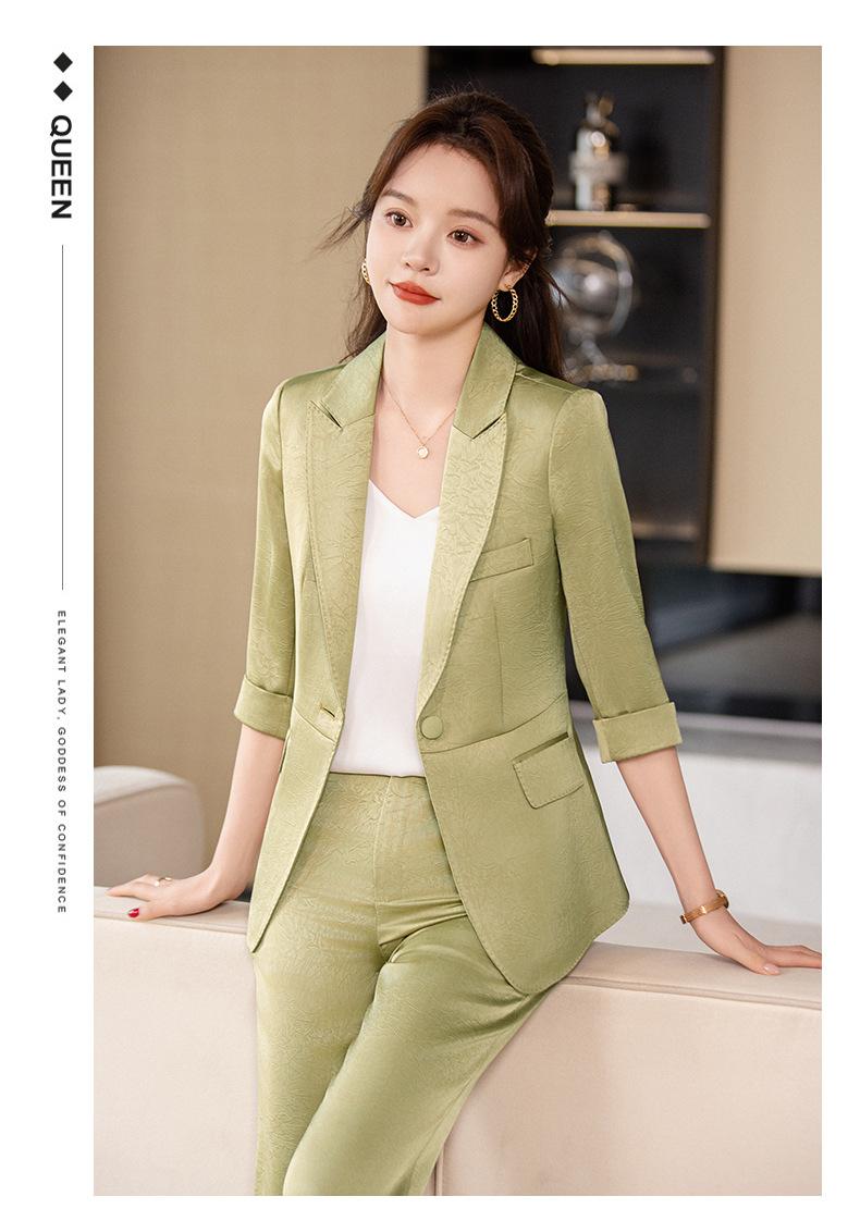 Primavera, verano y otoño 2024 nuevo verde siete mangas profesional pequeño traje cuello abrigo pantalones de mujer traje de dos piezas marea
