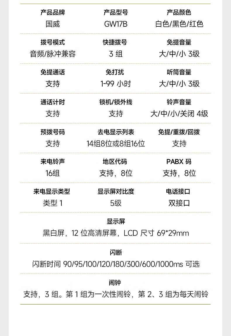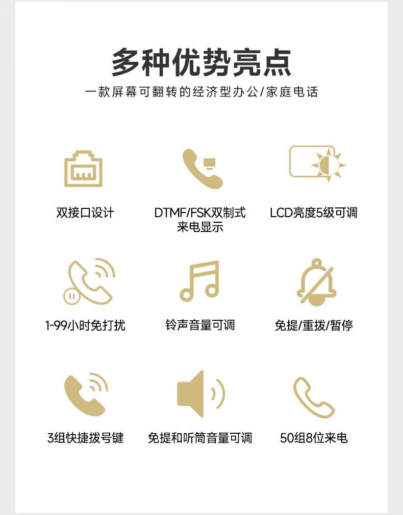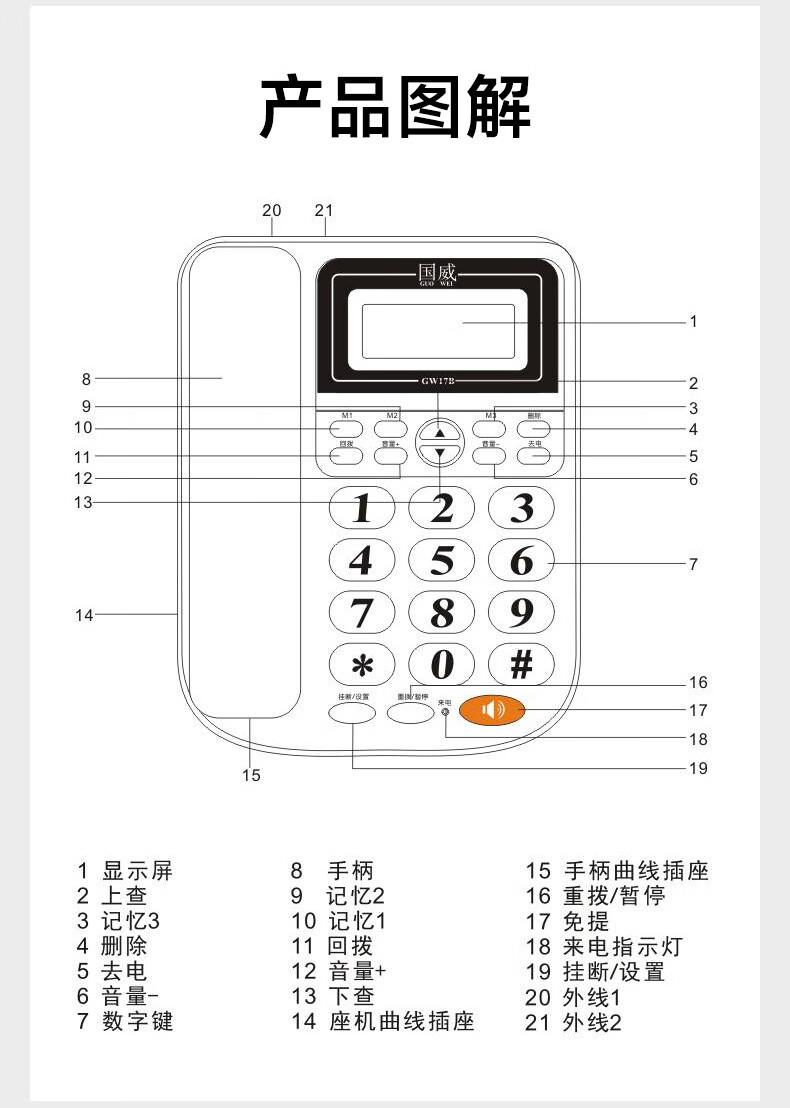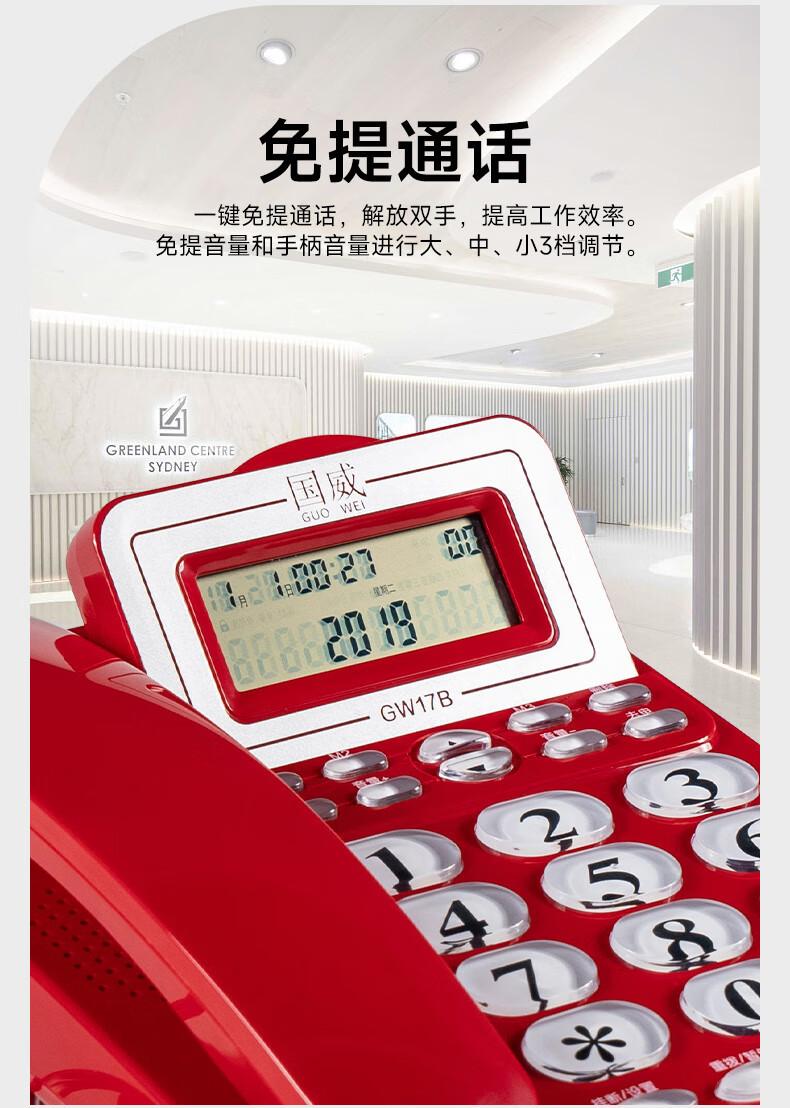 Teléfono fijo comercial Guowei GW17B, teléfono fijo para oficina y hogar, identificador de llamadas, pantalla sin batería
