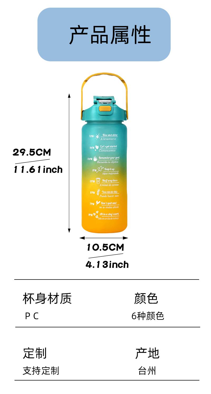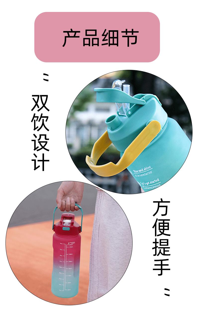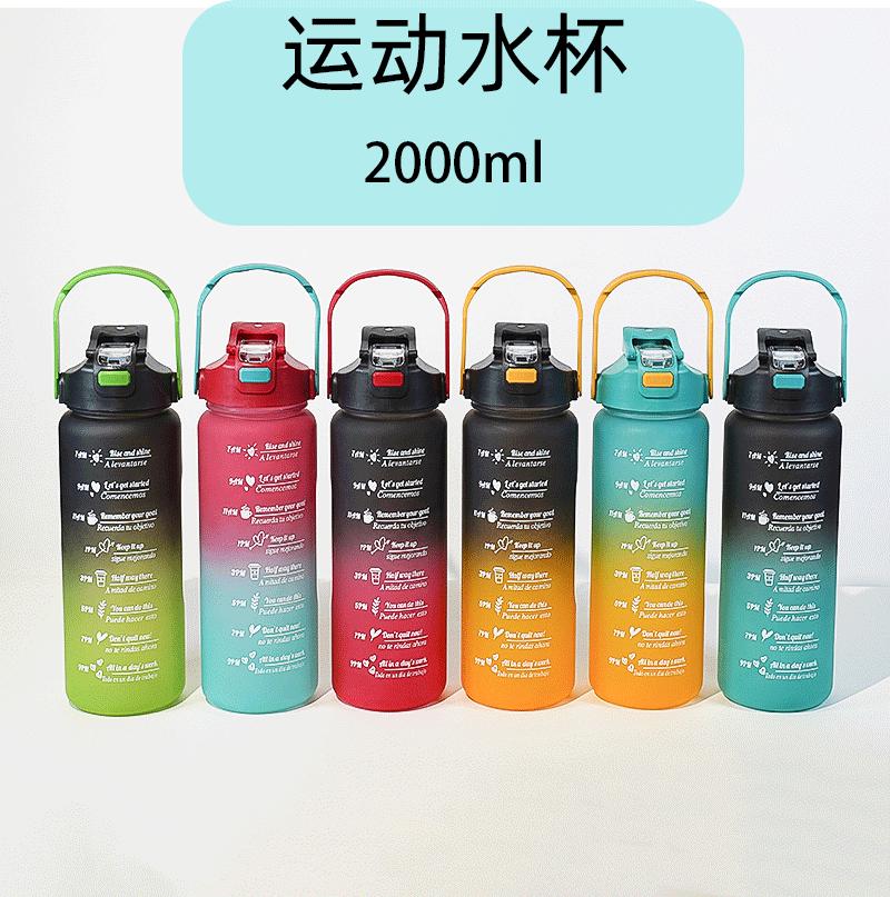 Vaso de plástico de gran capacidad transfronterizo de 2 l, vaso de agua degradado, ventosa deportiva, botellas de agua portátiles para exteriores