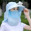 Sombrero de Protección Solar para Exteriores para Mujer, Sombrero de Sol de Verano Transpirable Anti-UV, Sombrero de Viaje para Recolección de Té, Sombrero de Sol con Cubierta Facial, Ala Ancha