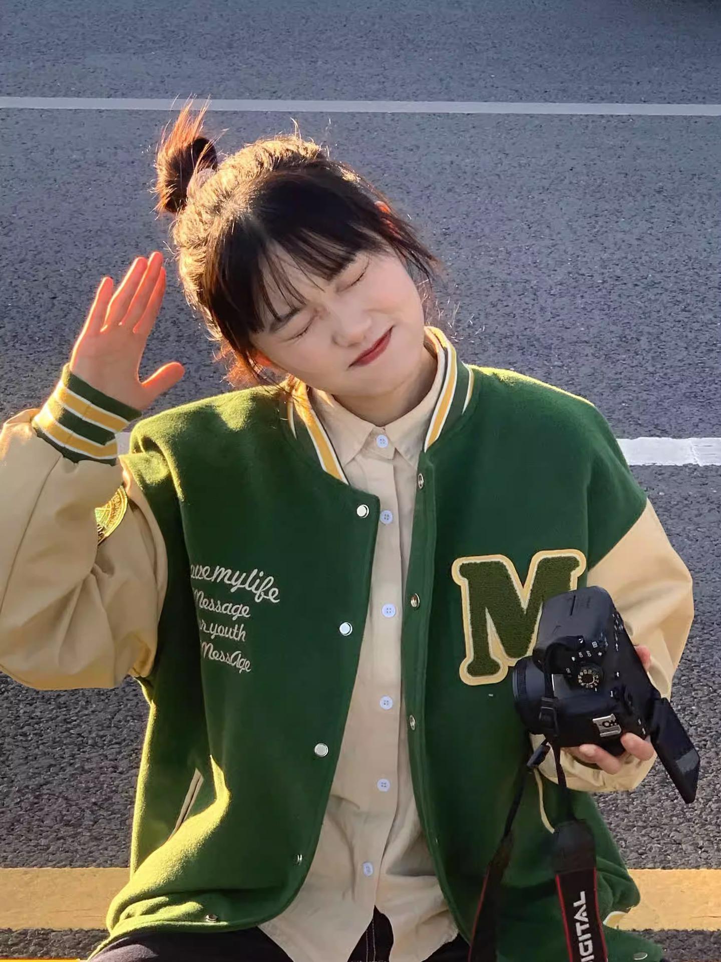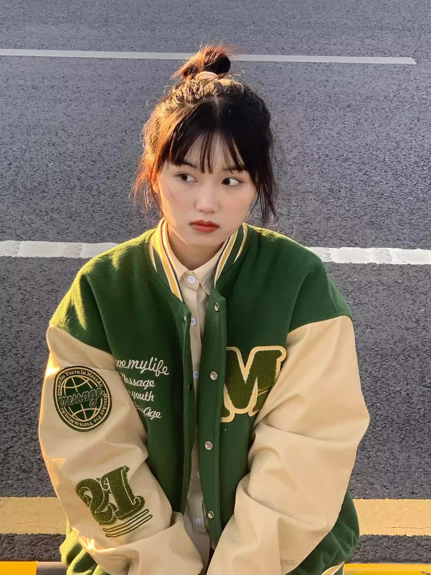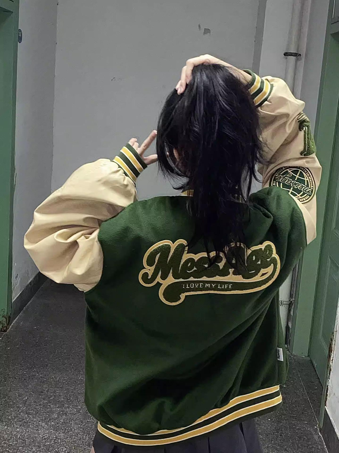 Chaqueta estilo universitario retro de calle americana, chaqueta de estudiante femenina, nueva marca de moda nacional verde 2023, traje de béisbol para pareja