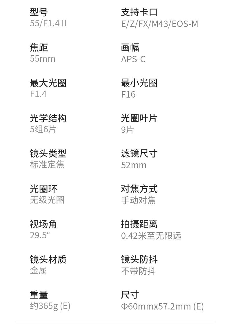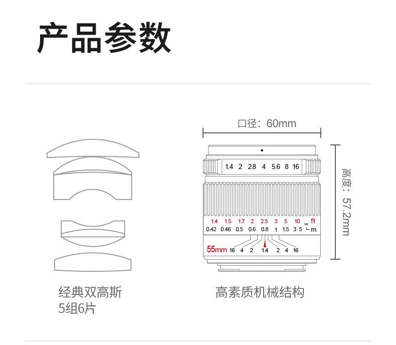 Lente micro única Seven Craftsman 7artisans 55 mm f/1.4II de segunda generación, adecuada para Panasonic Fuji M