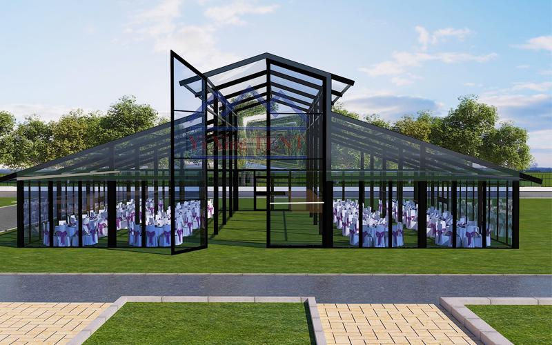 Invernadero exterior carpa transparente estilo europeo para bodas carpa temporal celebración boda montaje carpa de aleación de aluminio