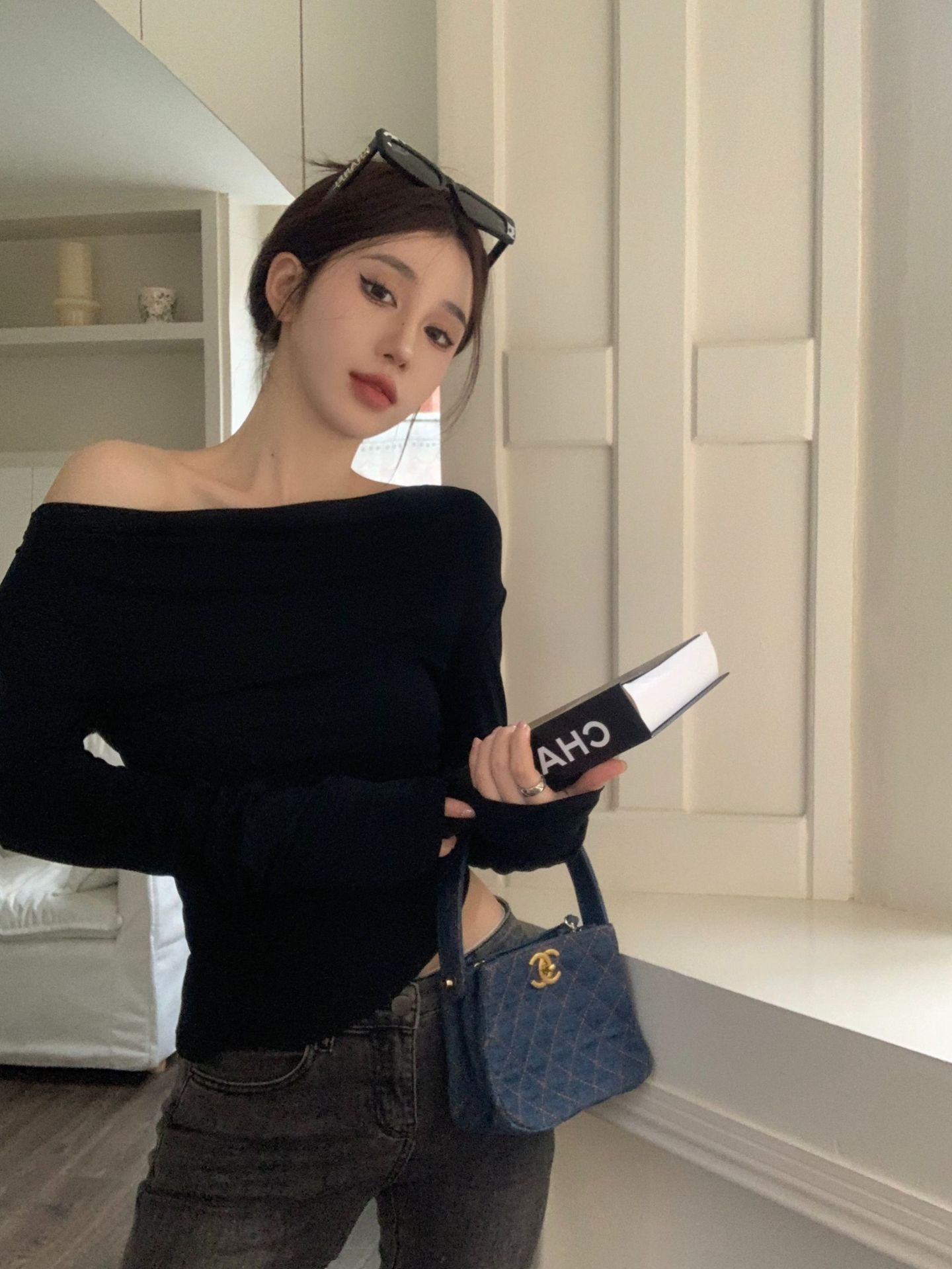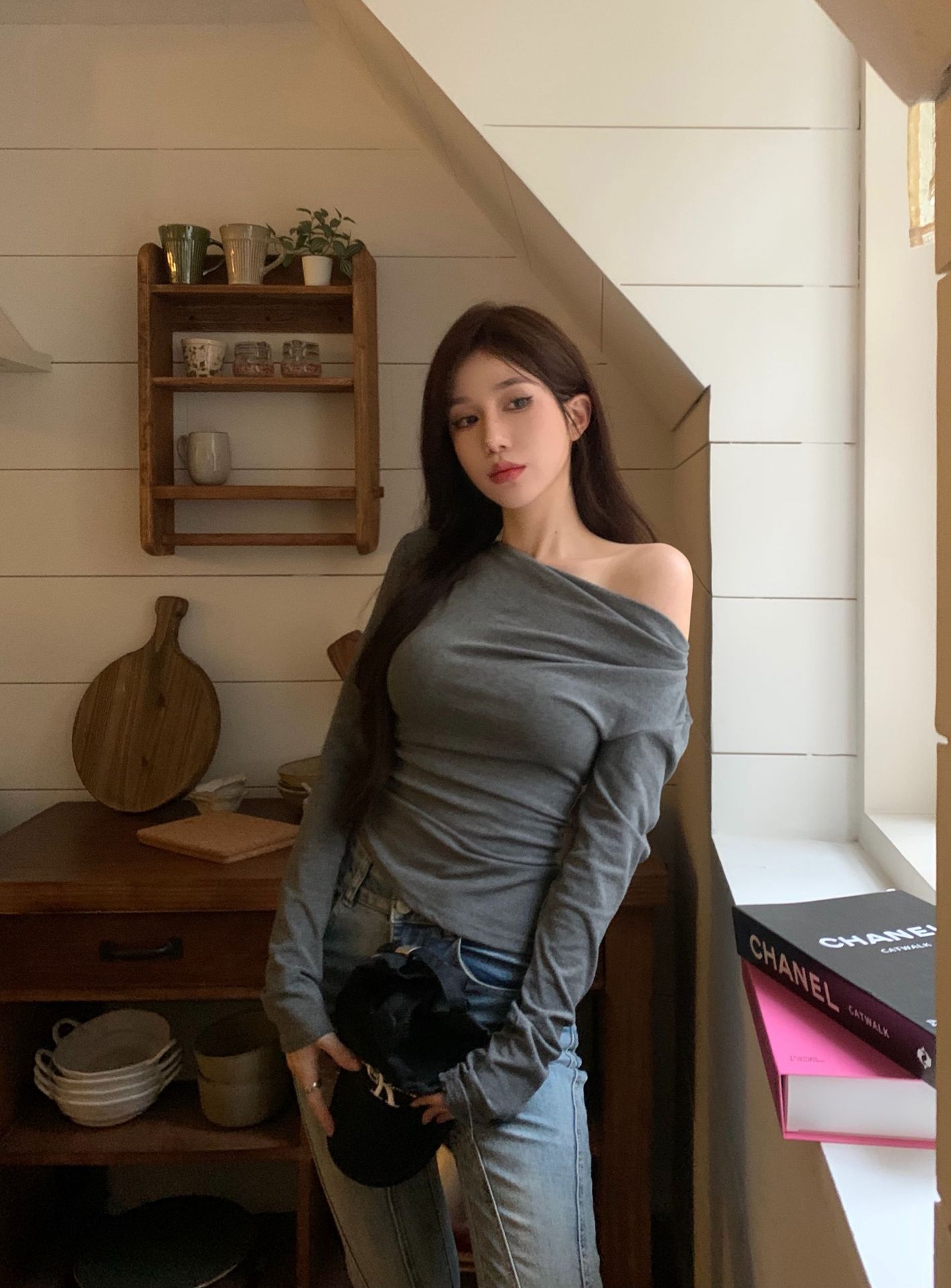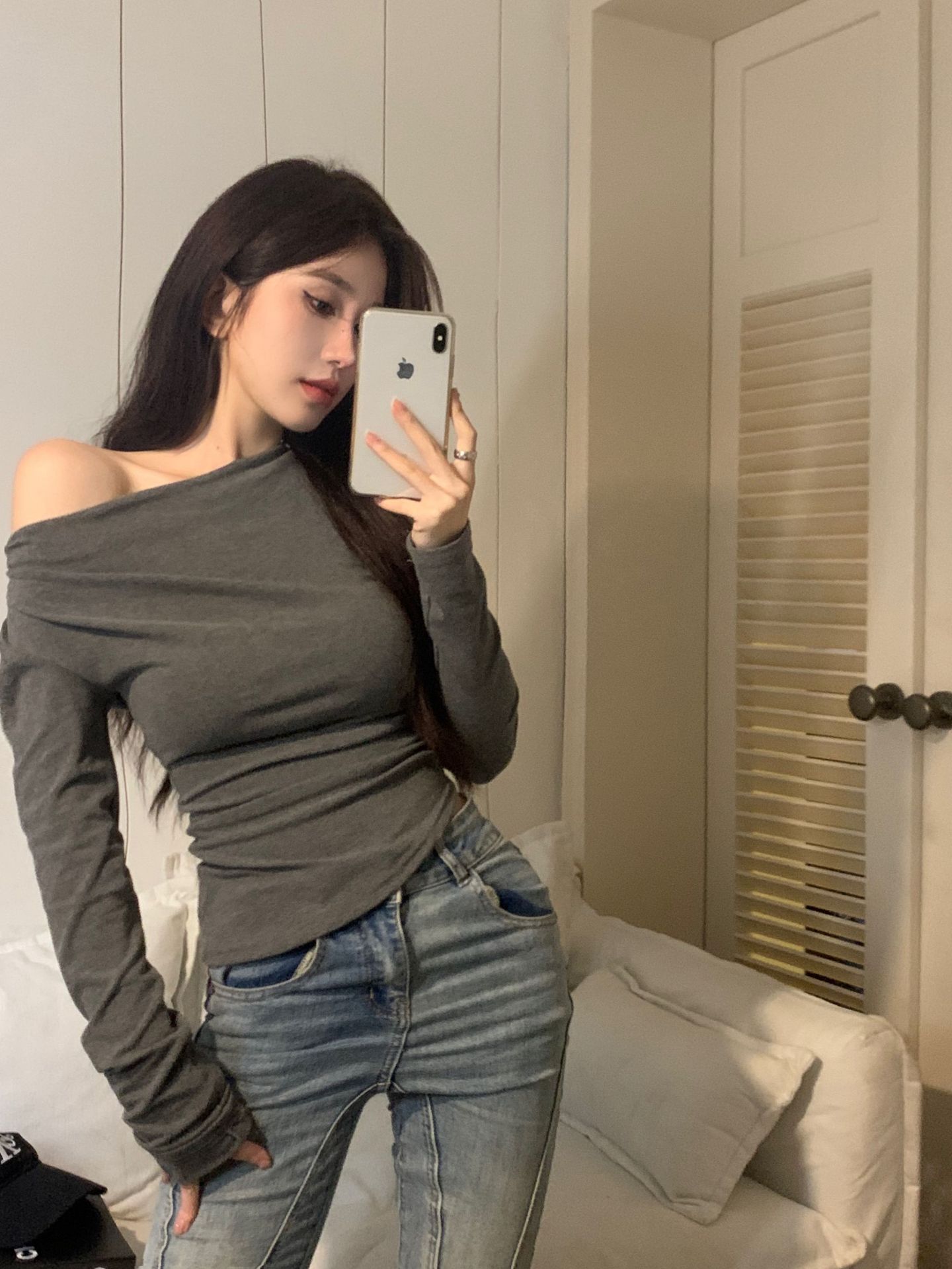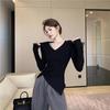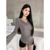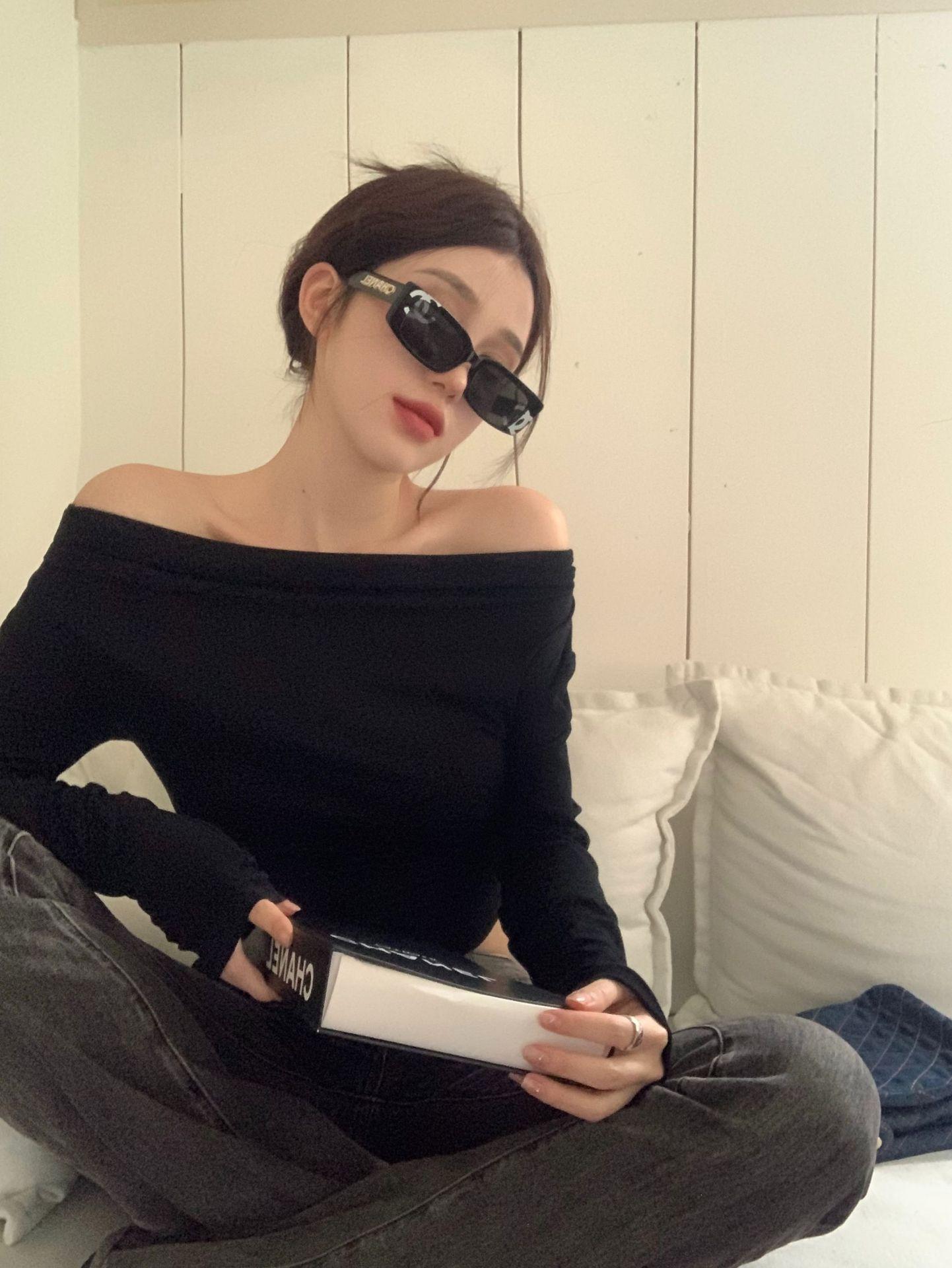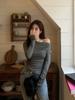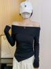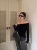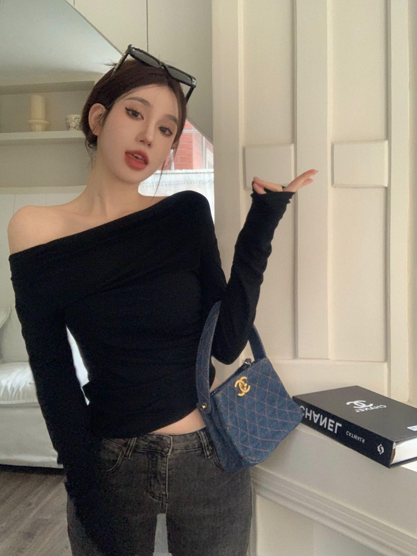 Camisa de fondo irregular para mujer 2023 nueva ropa interior de principios de otoño, top de manga larga con hombros descubiertos y clavícula con hombros descubiertos de alta calidad