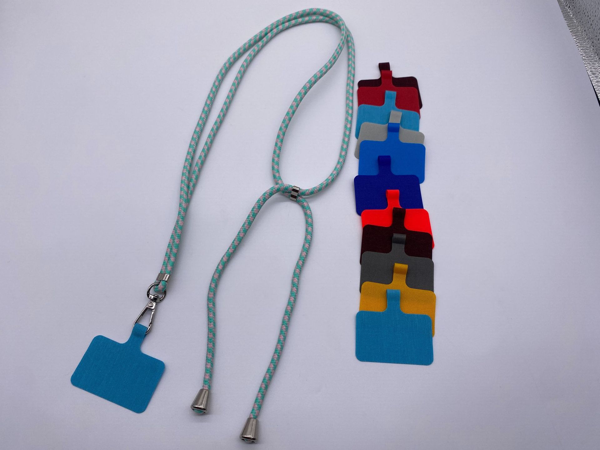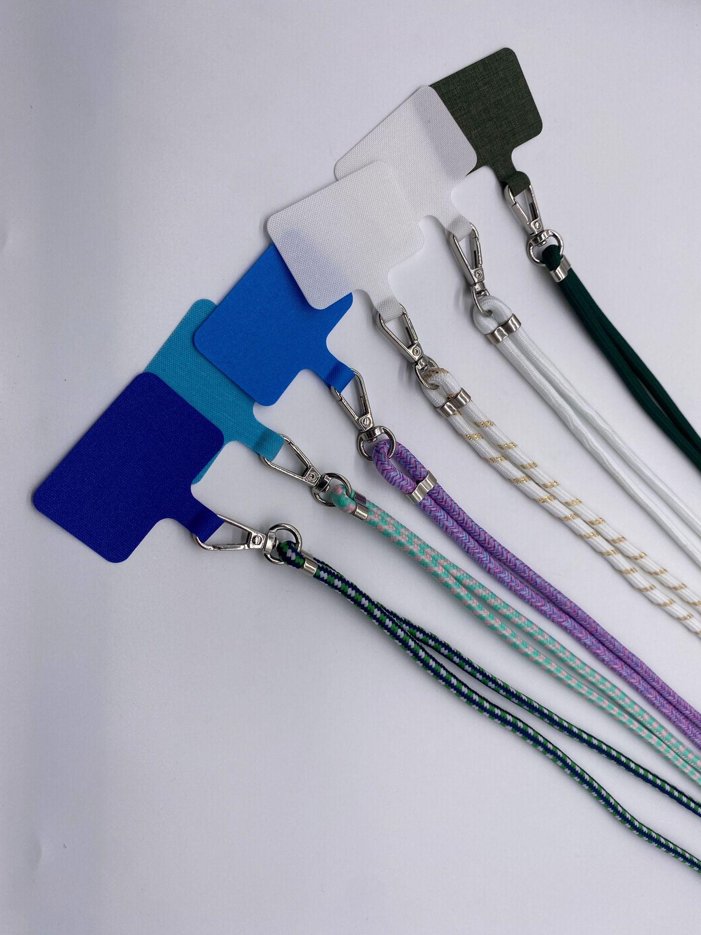 Los fabricantes suministran cordón universal para teléfono móvil con junta fija, cordón para teléfono móvil con adhesivo trasero, tarjeta fija, clip para teléfono móvil