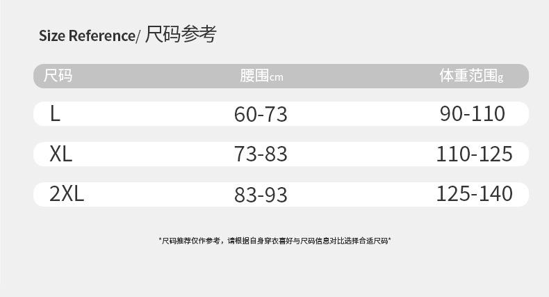 L 45.00 kg-55.00 kg, XL 55.00 kg-62.50 kg, 2XL 62.50 kg-70.00 kg