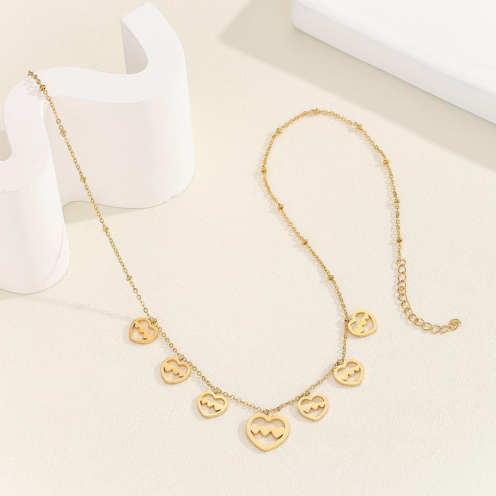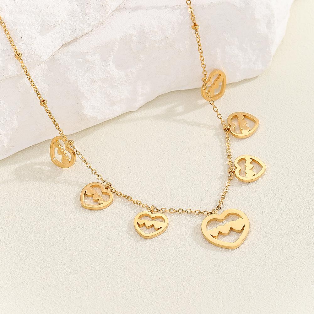 Acero de Titanio Lujo Ligero Exquisita Cadena Clavicular con Múltiples Colgantes de Corazón Diseño Nicho para Mujer Joyería al Por Mayor Colgante de Corazón