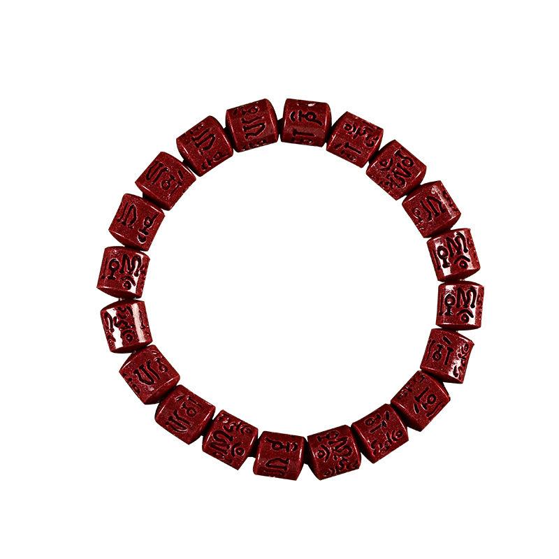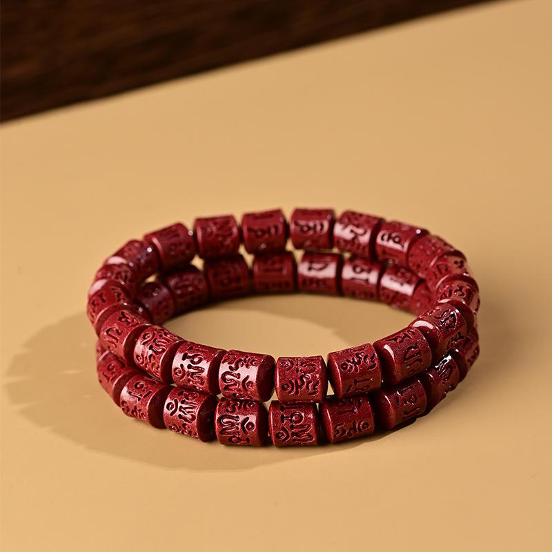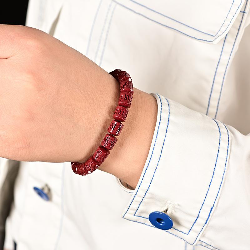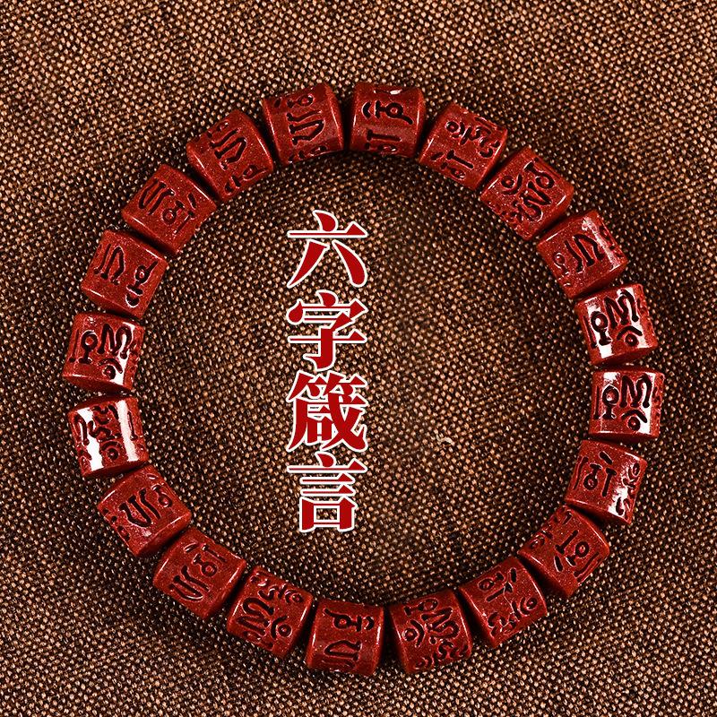 Pulsera de mantra de seis palabras con cuentas de barril de cinabrio natural para mujer, pulsera de arena de oro púrpura de alto contenido, regalo de año de nacimiento de conejo masculino