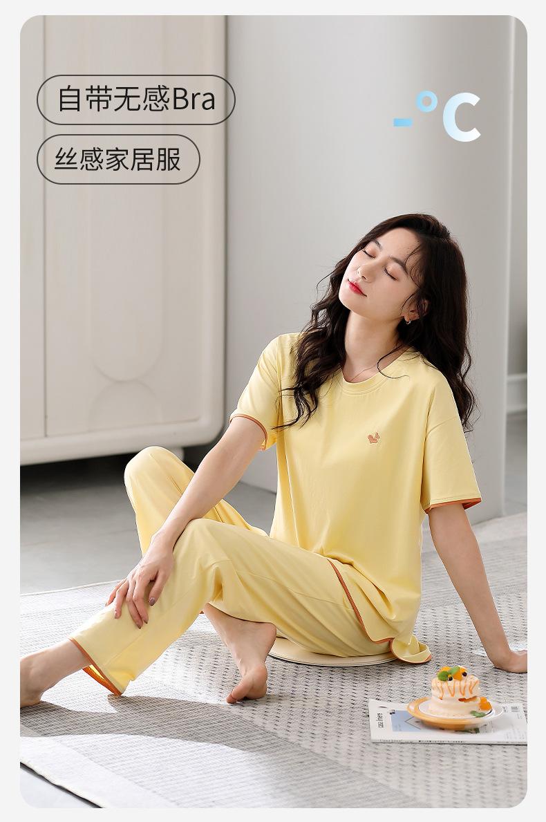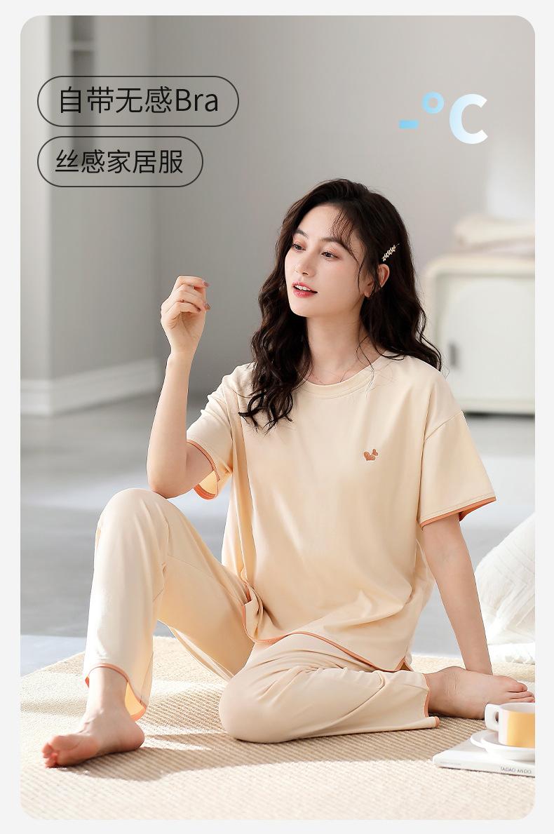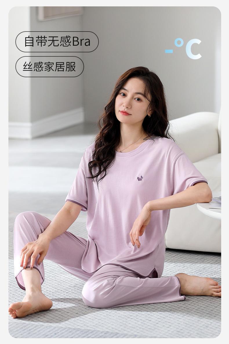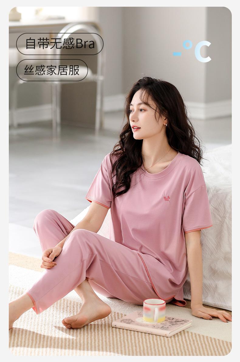 Pijama de mujer con almohadilla en el pecho verano modal pantalones de manga corta fino verano mujer para exterior verano ropa para el hogar