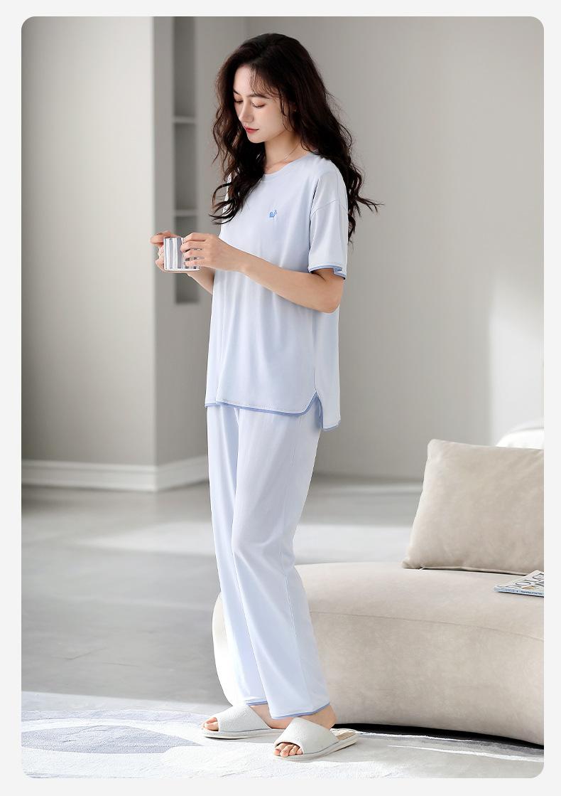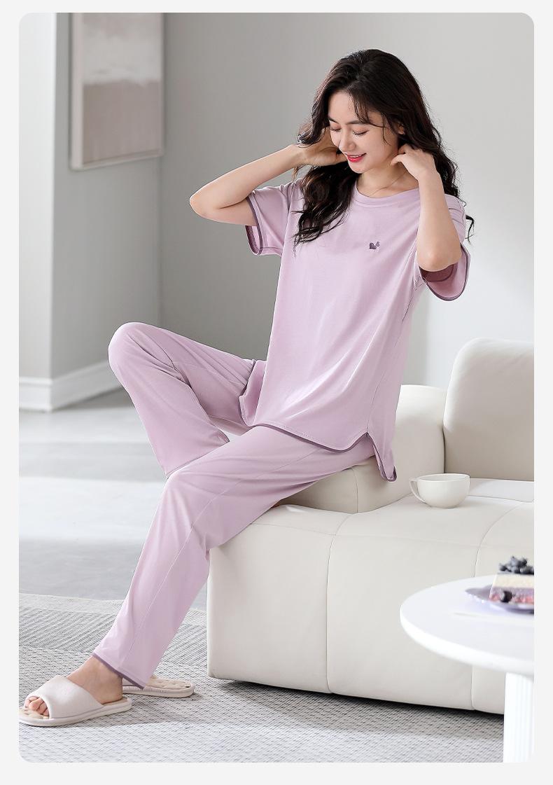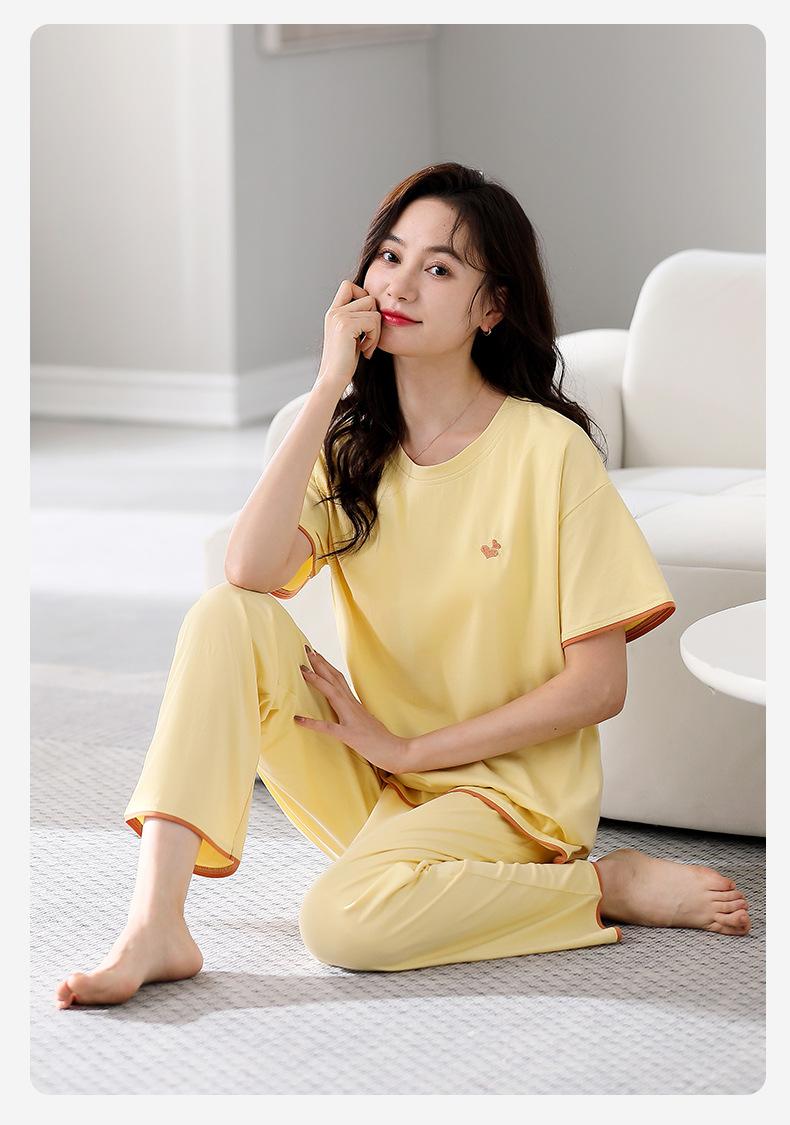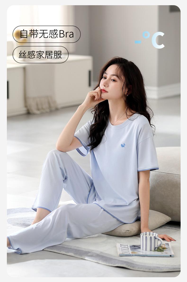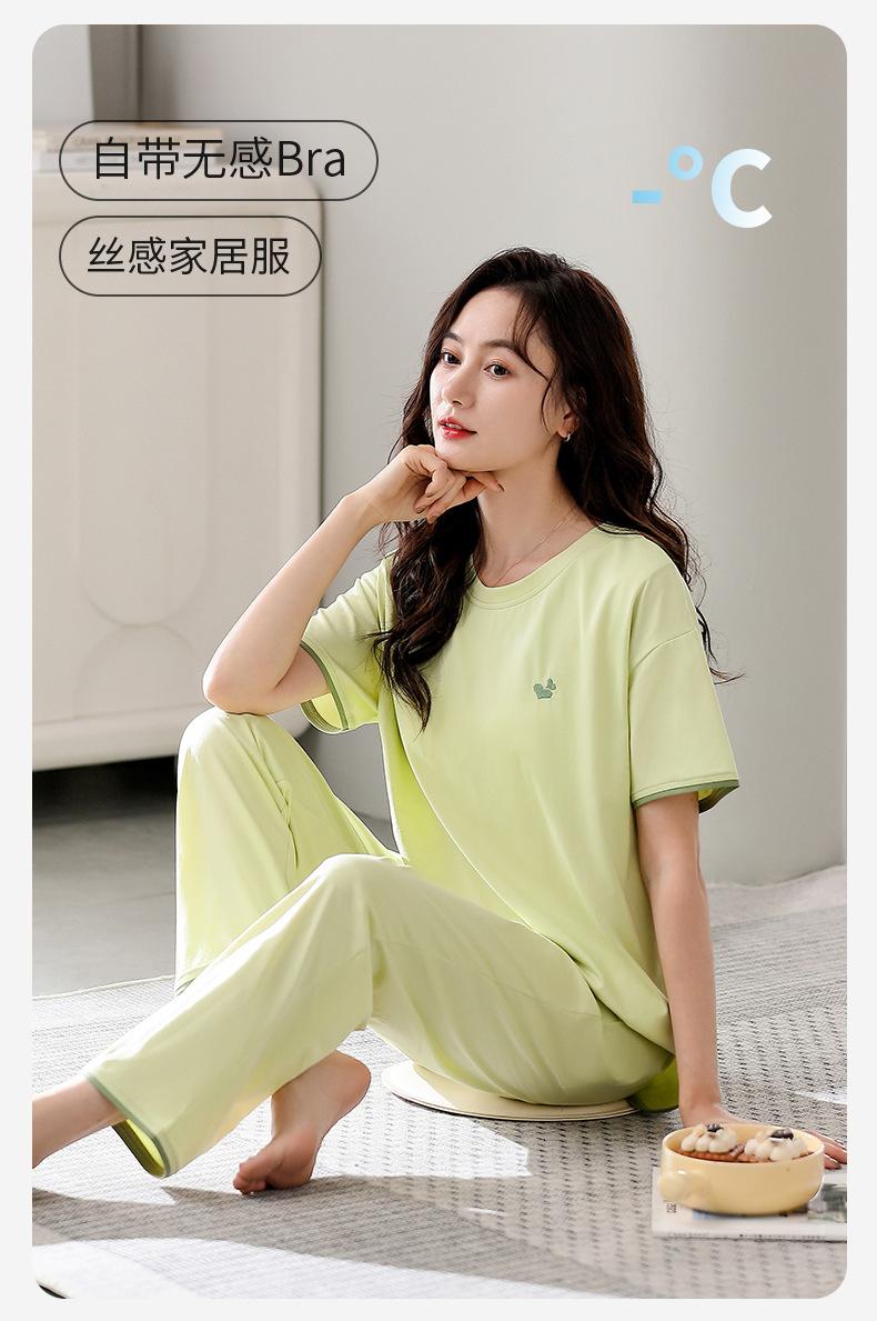 Pijama de mujer con almohadilla en el pecho verano modal pantalones de manga corta fino verano mujer para exterior verano ropa para el hogar