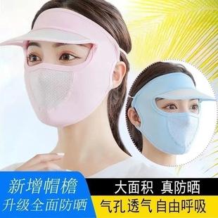 Mascarilla de verano para mujer, protector solar de seda helada, facial completa, fina, transpirable, antiultravioleta de verano, que cubre el rostro, a prueba de polvo, mascarilla con máscara.