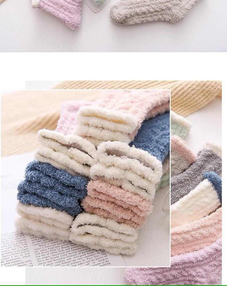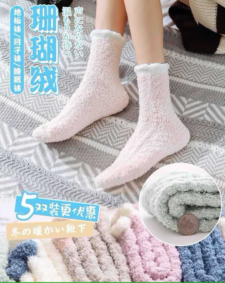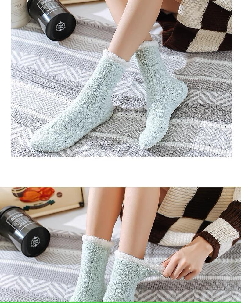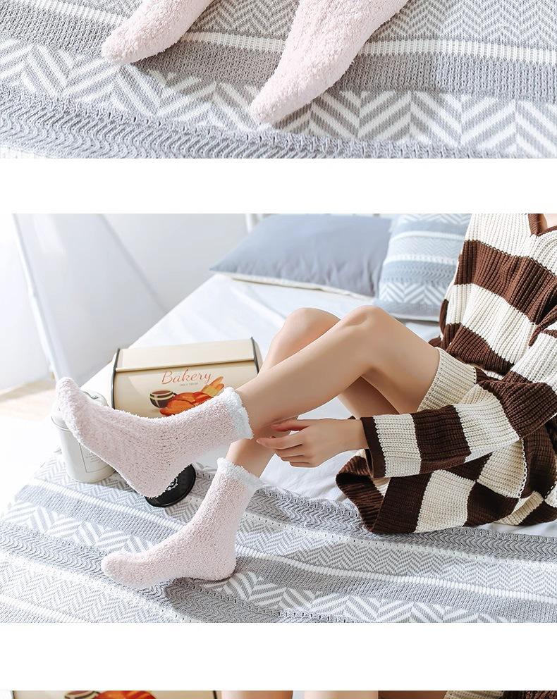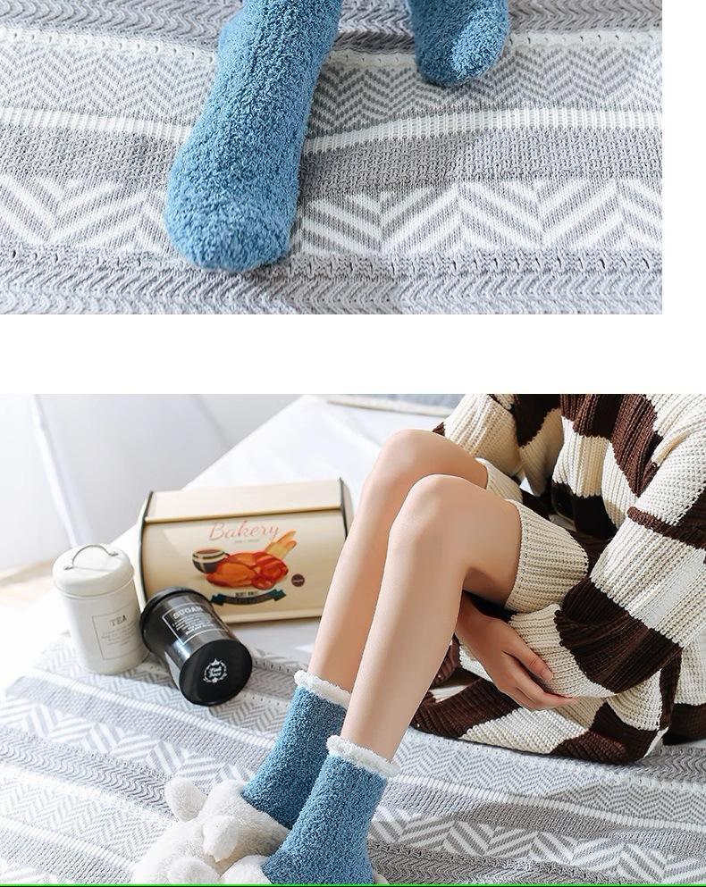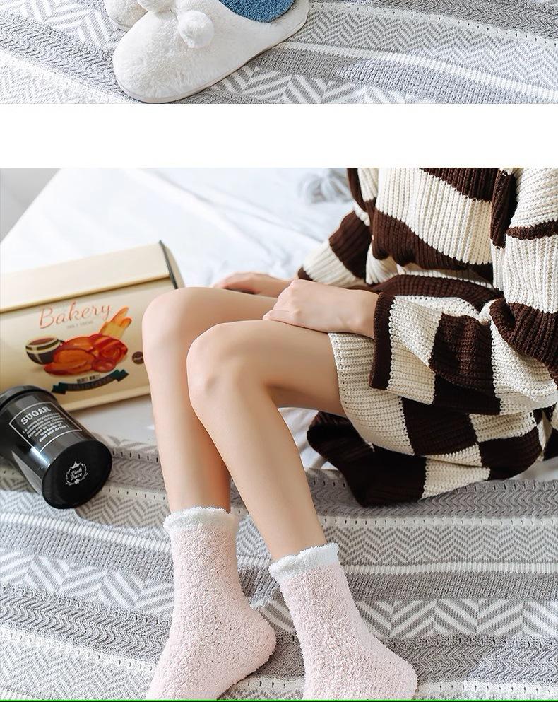 Calcetines de lana coral para mujer, otoño e invierno, largos, con forro polar, gruesos, hasta la mitad de la pantorrilla, para confinamiento, cálidos para dormir en casa