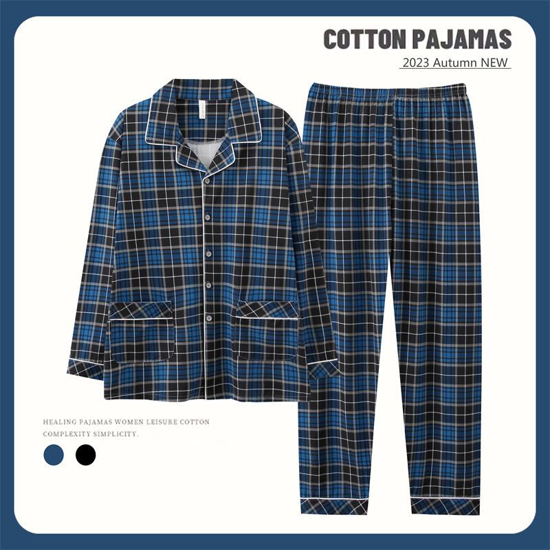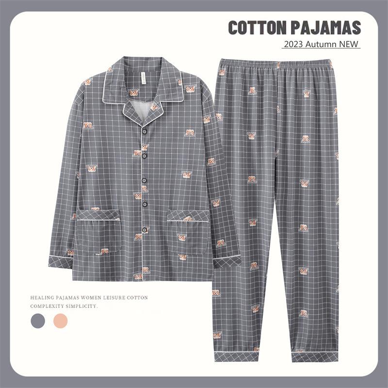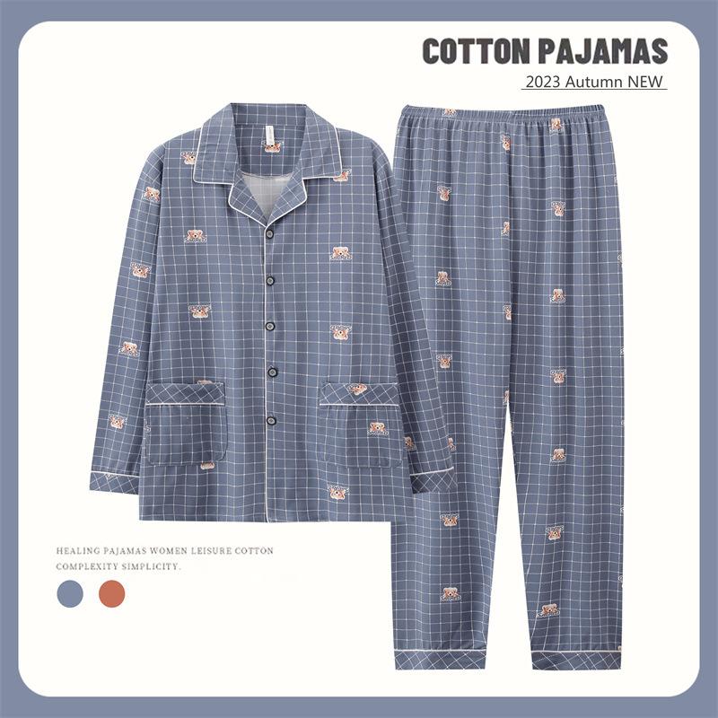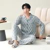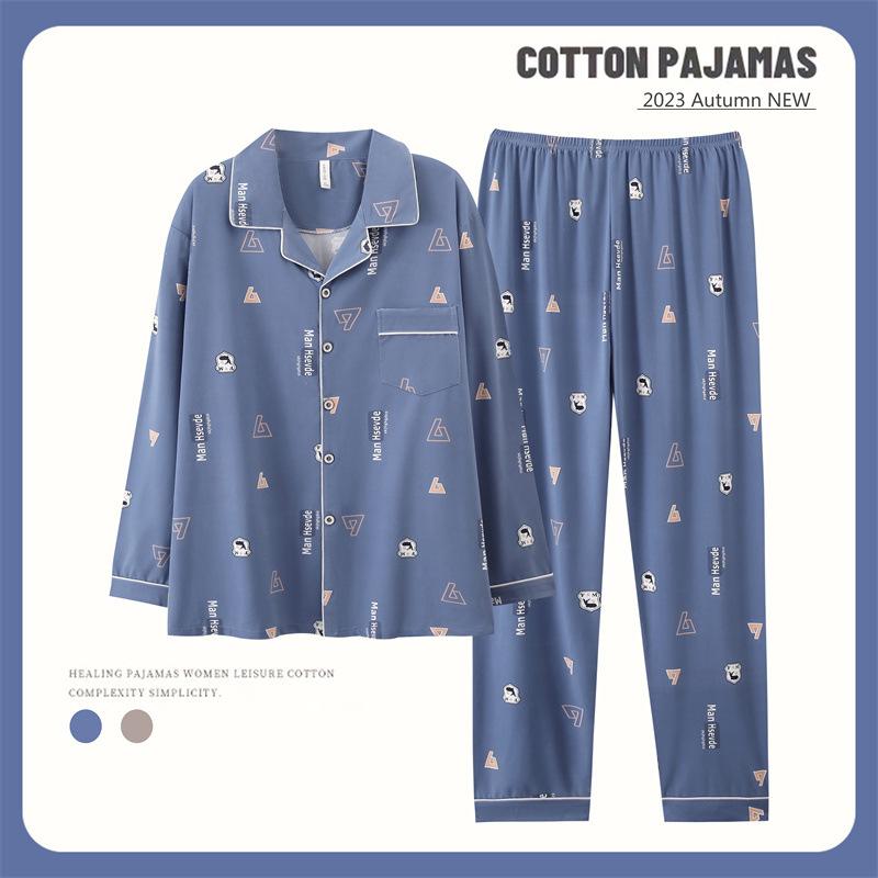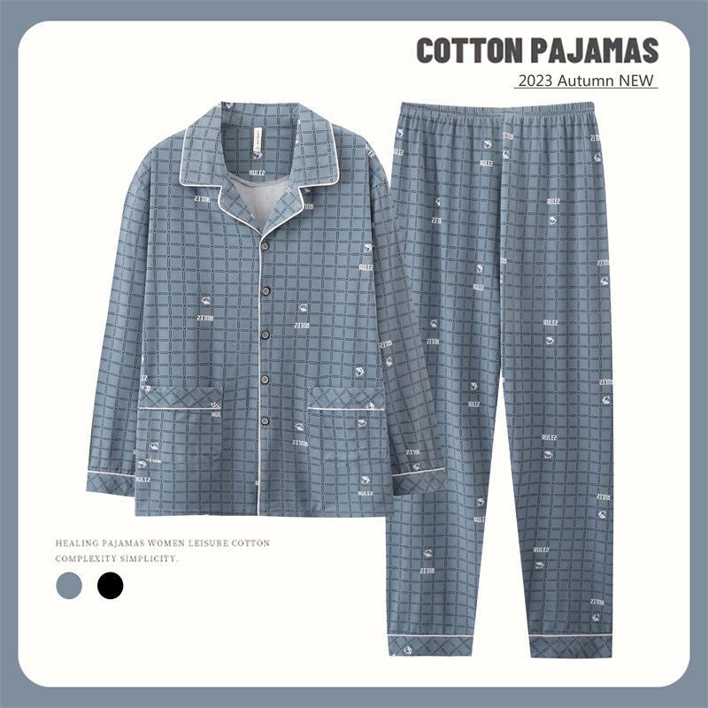 Primavera y Otoño Nuevas Pijamas para Hombre Solapa Cárdigan Sencillo Casual Moda Talla Extra para Hombre Manga Larga Pantalones Ropa para el Hogar