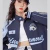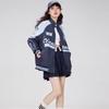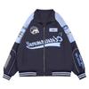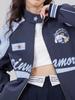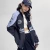 Chaqueta de motociclista bordada con costuras de color en contraste y diseño de nicho, chaqueta adelgazante holgada y combinable estilo retro americano para mujer