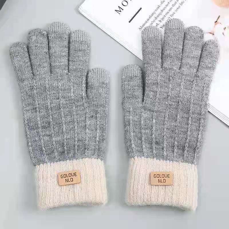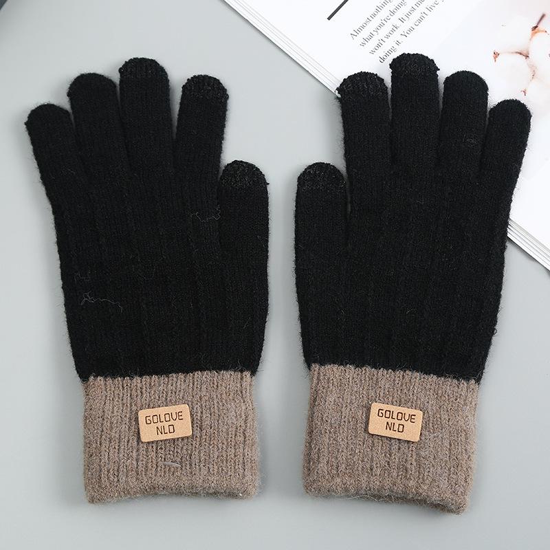 Guantes de punto con pantalla táctil para mujer, otoño e invierno, cálidos, antideslizantes, forrados con vellón, gruesos, estilo coreano, guantes de ciclismo de moda para hombres y mujeres.